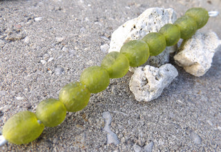 African Recycled Glass Round Beads (Bodum) (Yellow Green) Approx 8mm diam. 10 Beads