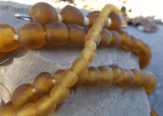 African Recycled Glass Round Beads (Bodum) (Golden) *10 Beads *Approx 10- 11mm.