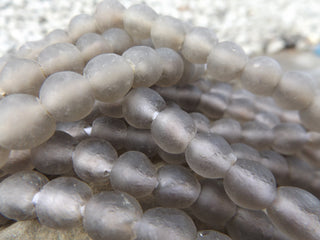 African Recycled Glass Round Beads (Bodum) (Grey) See Drop Down for Size Options