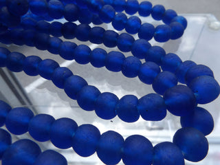 African Recycled Glass Round Beads (Bodum) (Bold Blue) Approx 8 mm diam. 10 Beads