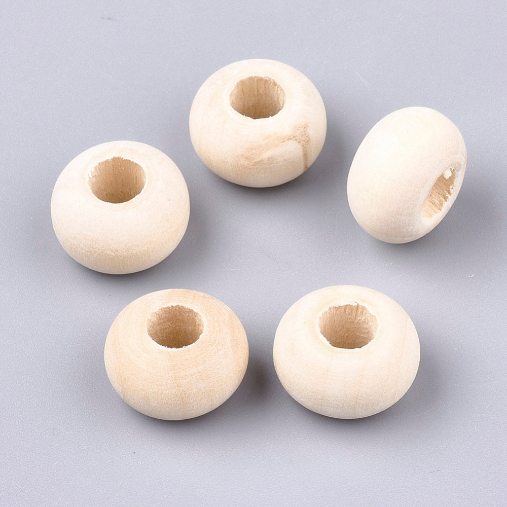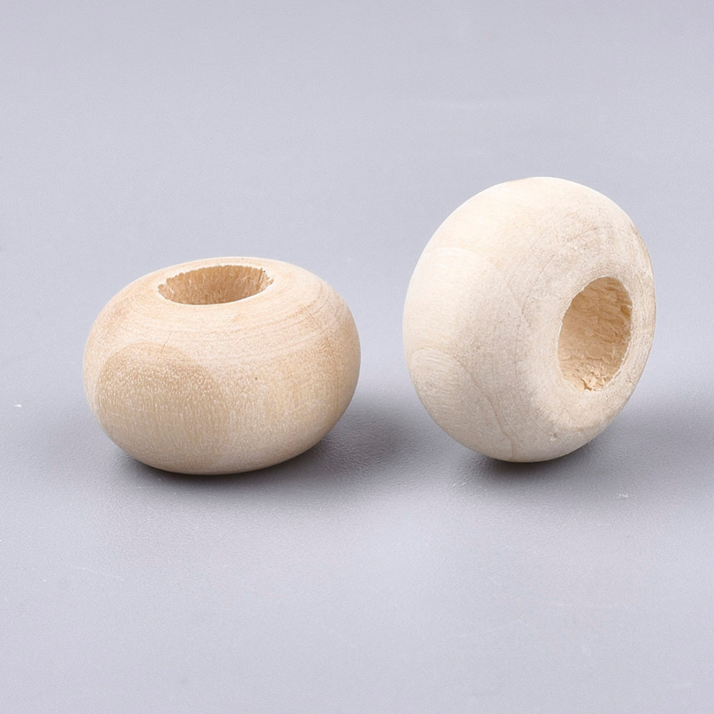Unfinished Wood Beads, Natural Unfinished Wood Beads, Rondelle, 14~14.5x9mm, Hole: 5.5~6mm. (Packed 25 Beads)