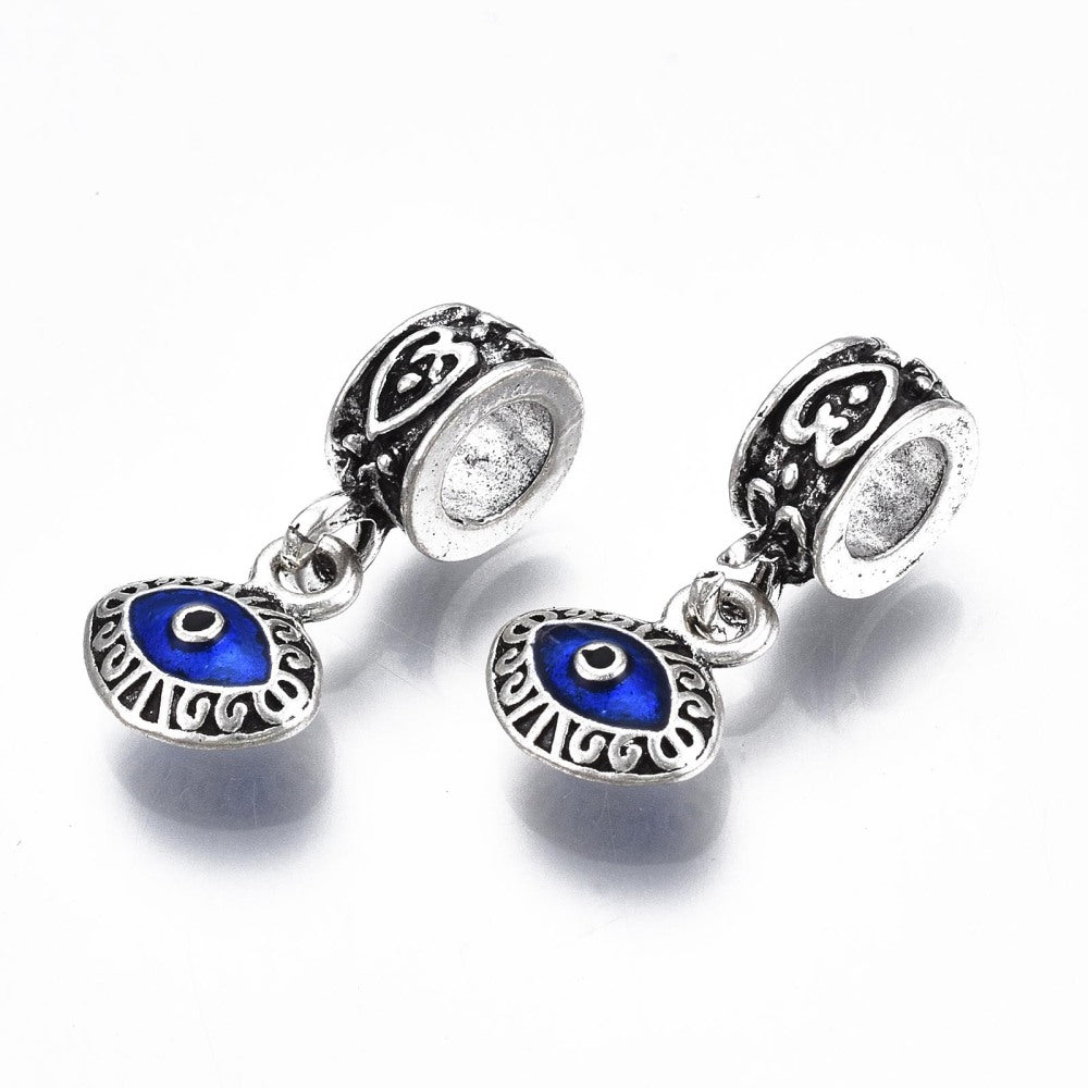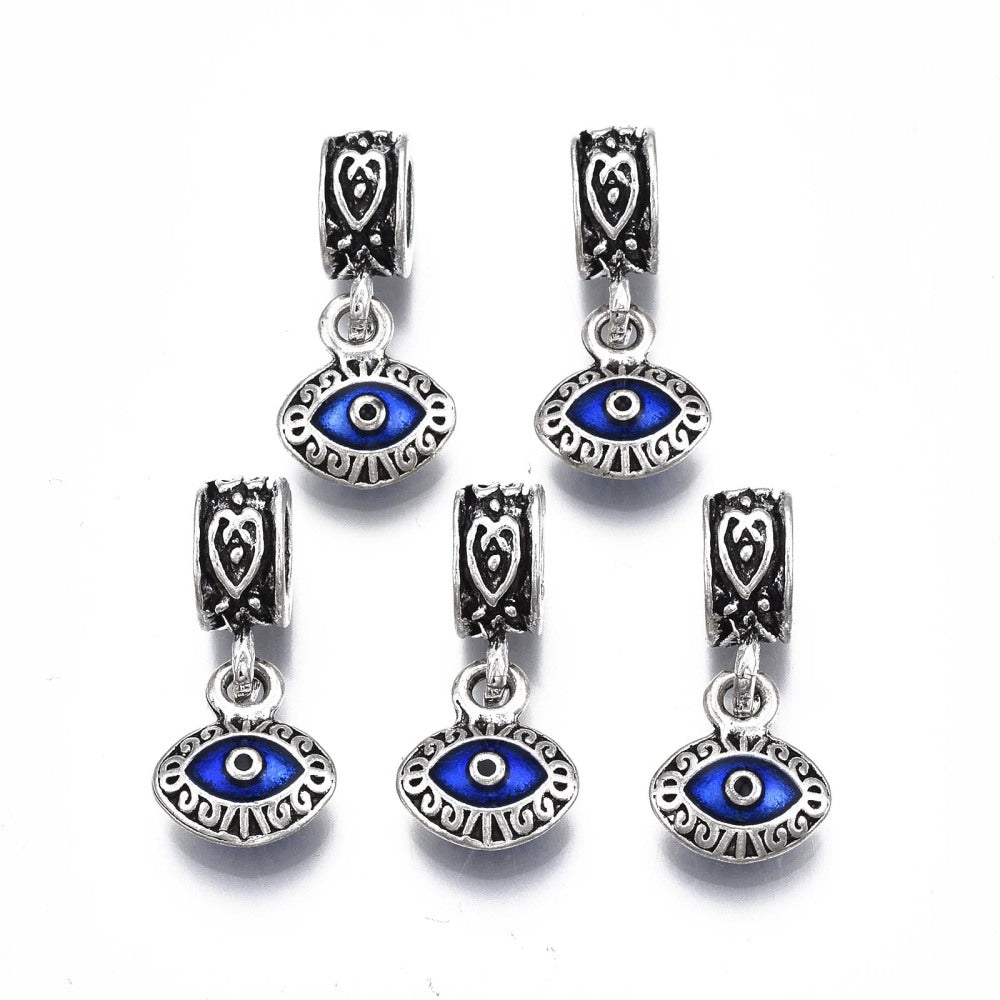 Alloy Enamel European Dangle Charms, Evil Eye, Large Hole Pendants, Antique Silver, Blue, 23.5mm, Hole: 5mm. (Packed 5 Charms)
