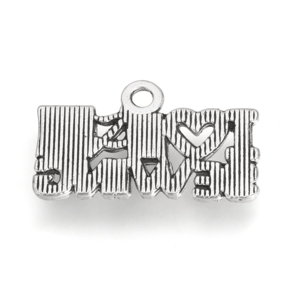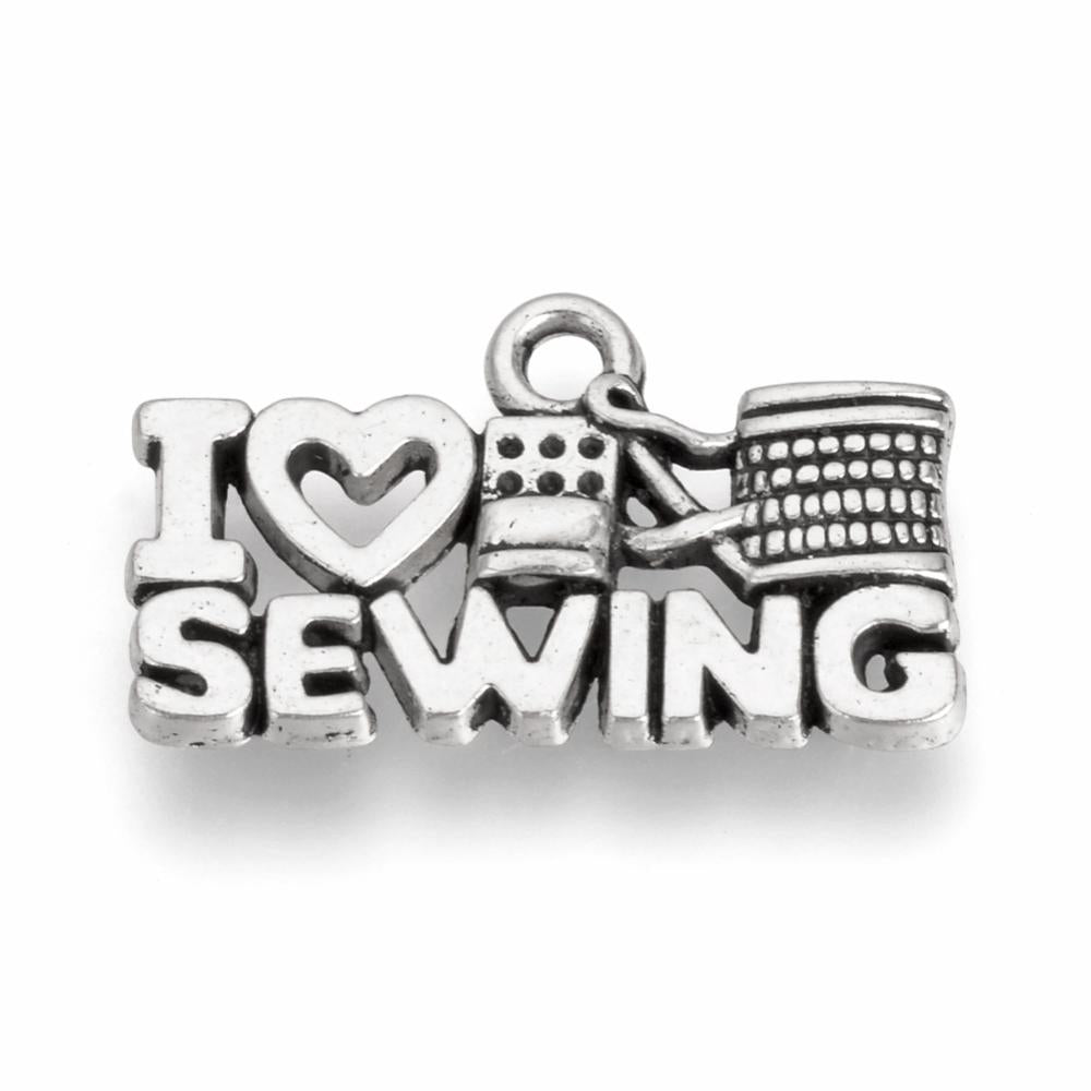 "I Love Sewing" Charm. *Antique Silver Color. 12.5x21x2mm, Hole: 1.5mm. *See Drop Down for Options