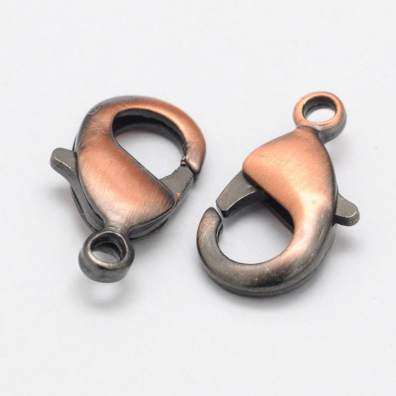 Brushed Red Copper Environmental Brass Lobster Claw Clasps, Cadmium Free & Nickel Free & Lead Free, 12x7x3mm, Hole: 1mm. (Packed 12)