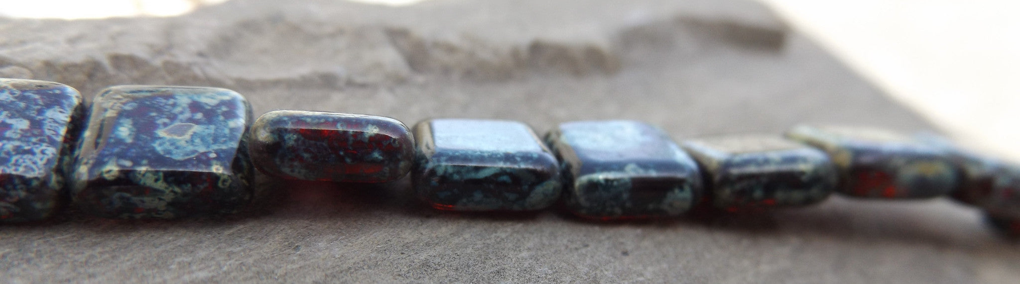 Czech Square Glass Beads (Square) *Red with Travertine Finish 10 x 10 mm (12 beads)