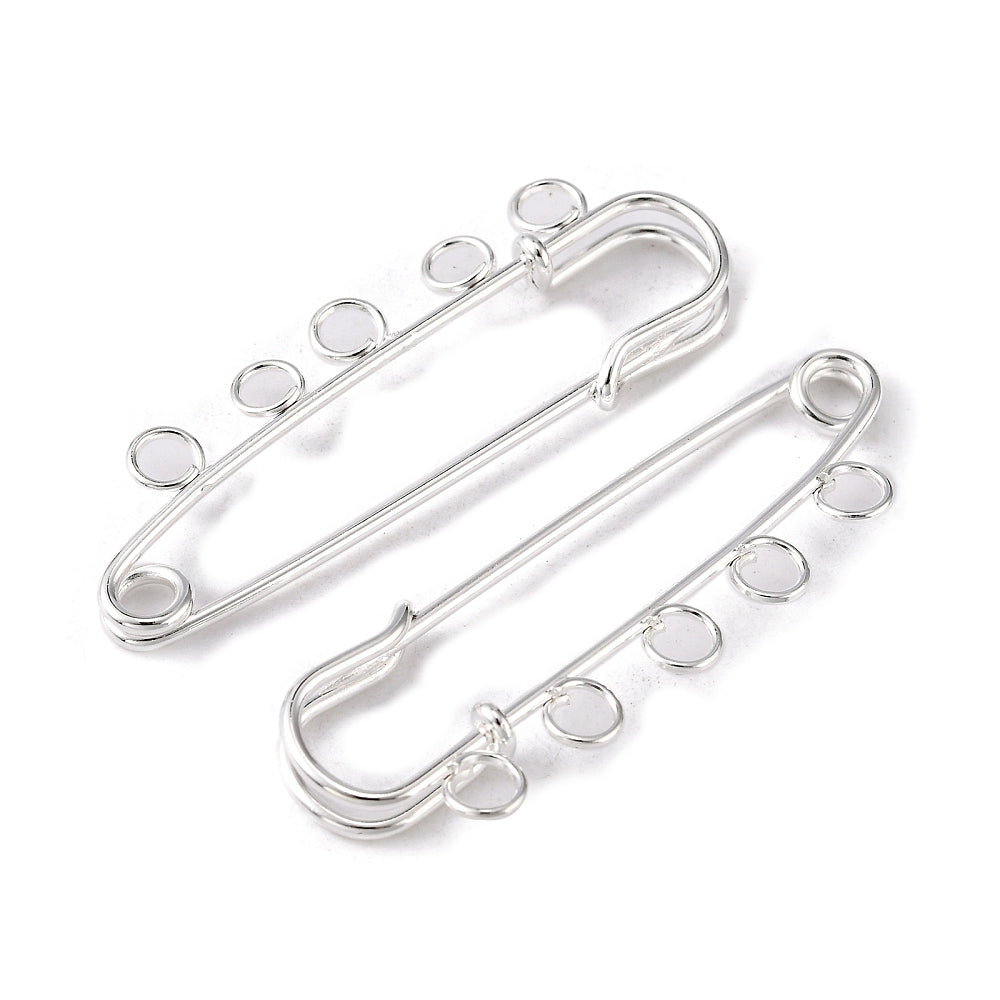 Brass Brooch Findings, for DIY Brooch Making, with Iron Pin, Kilt Needles, Silver Color Plated, 50x17mm, Hole: 3mm *Packed 5