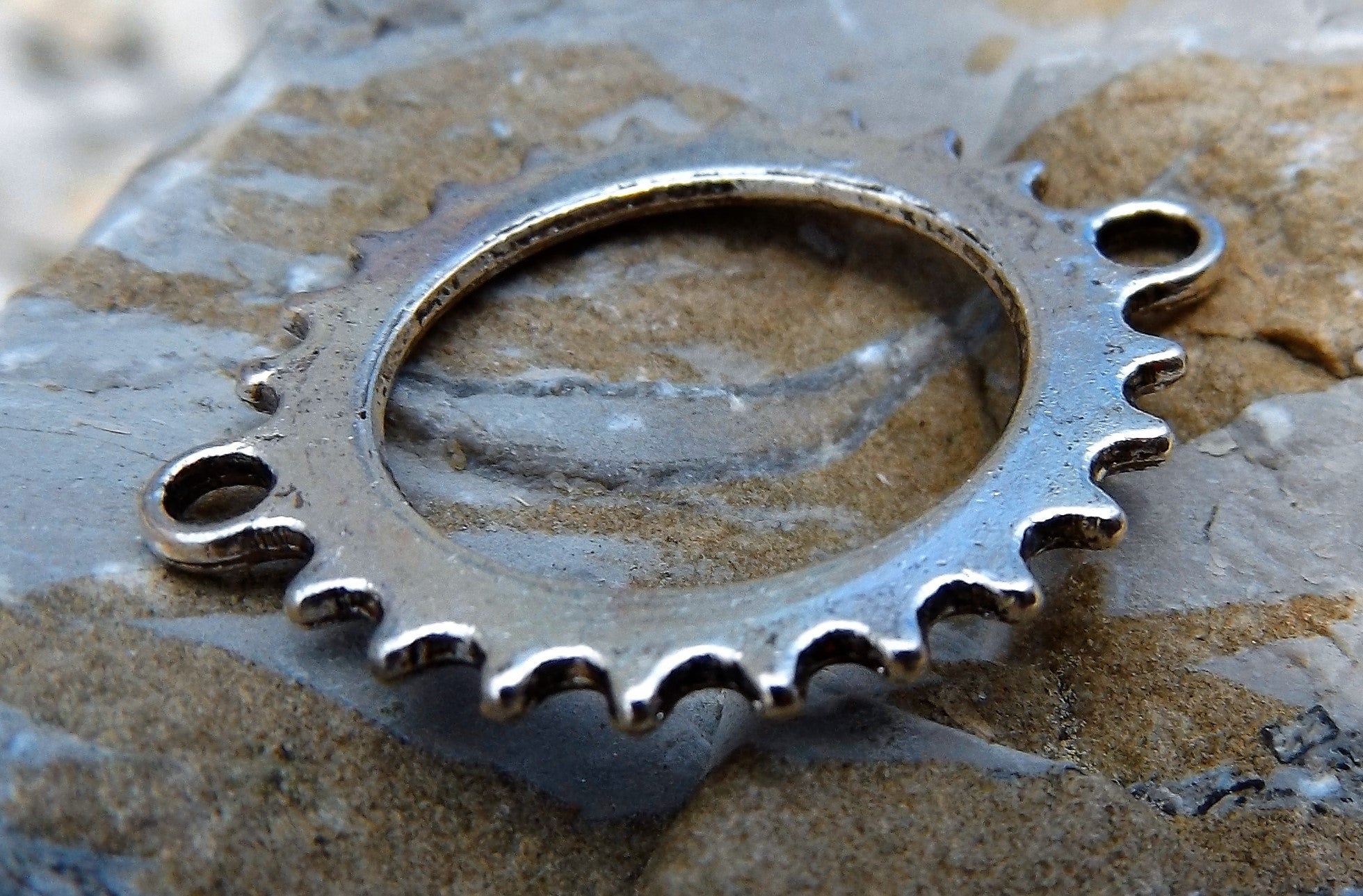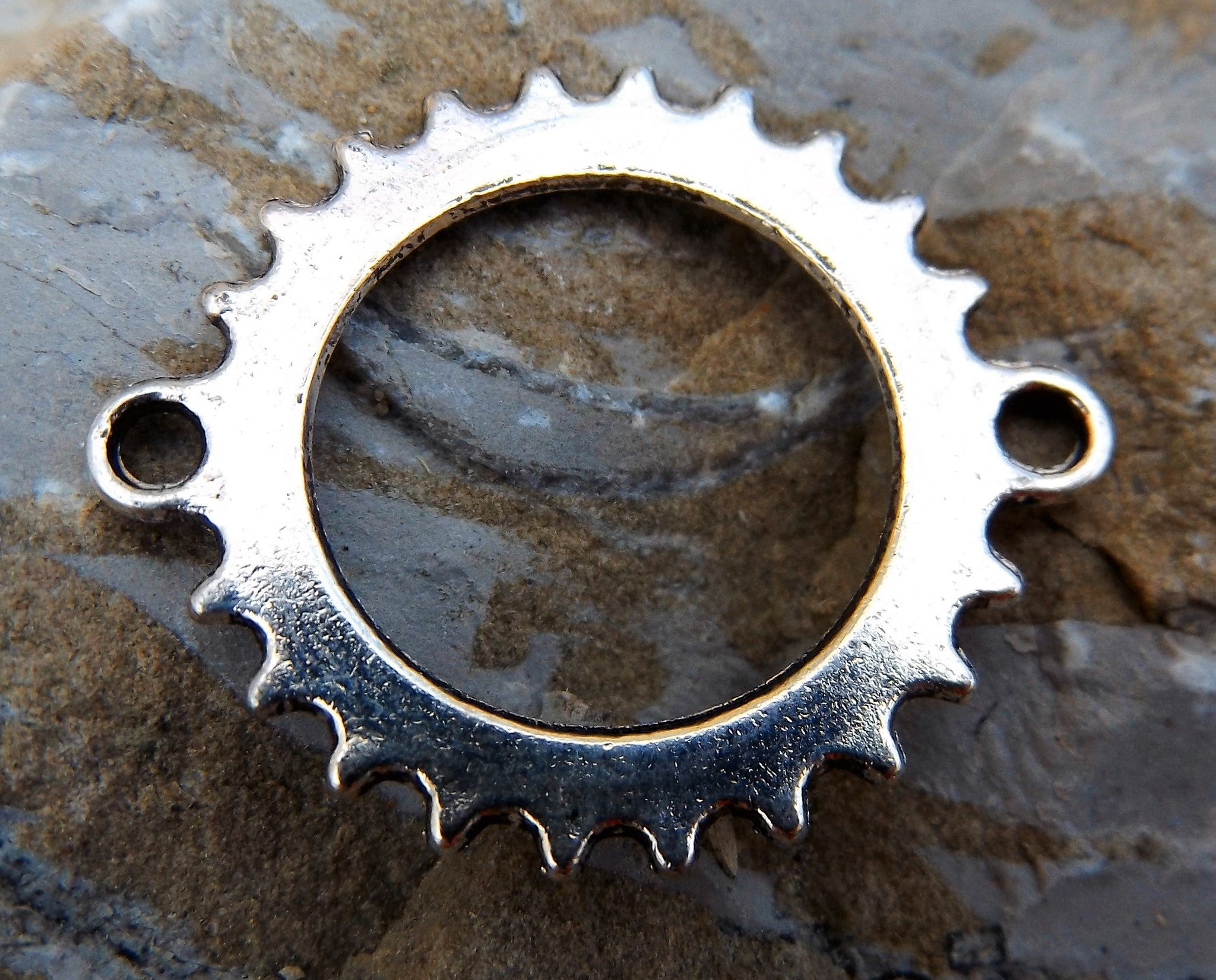 Gear/ Cog (double loops) DLOOPCOG22. Antique Silver. 24 x 28 x1mm. (hole 2mm). Packed 8