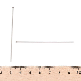 304 Stainless Steel Head Pins. 40 x .06mm size. (Stainless Color) *Packed 50 Pins
