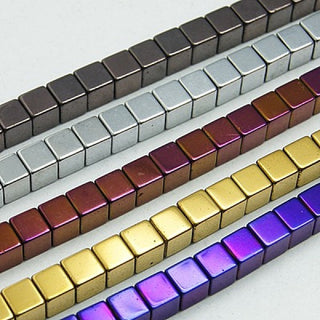 Non-magnetic Hematite Beads Strands, Cube, Color Plated, 4mm, Hole: 1mm, *approx 100 Beads. *See Drop Down for Color Options.