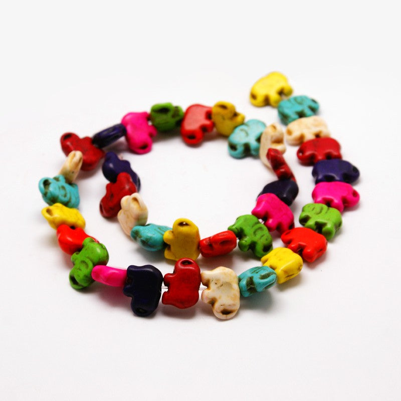 Elephant Howlite Beads Strands, Dyed, Mixed Color, 11x14x6mm, Hole: 1mm; about 37pcs/strand, 15.7inches
