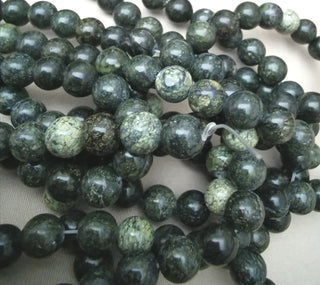 Serpentine - Natural Green (8 mm Round) (16" Strand. Approx 50 Beads )