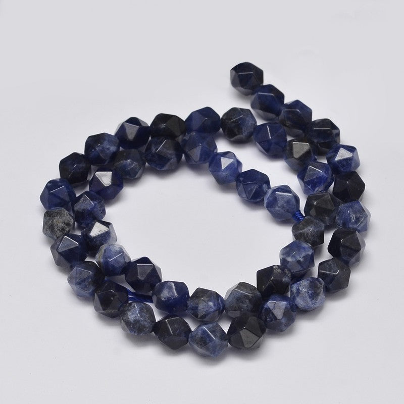 Faceted Natural Sodalite Beads Strands, Star Cut Round Beads, 8x7mm, Hole: 1mm; *Approx 50 Beads