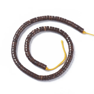 Coconut Beads Strands, Heishi Beads, Flat Round, Coffee, 6x2.5~3mm, Hole: 1mm, *Approx 110 Beads.