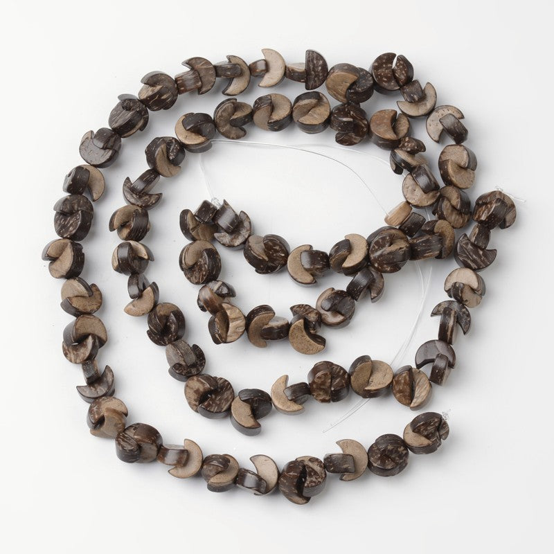 Natural Coconut Moon Bead Strands, Coconut Brown, 12x8x5mm, Hole: 1mm, about 67pcs/strand, 15.7 inch