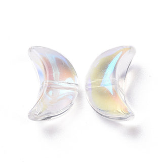 Transparent Electroplate Glass Beads, AB Color Plated, Moon,14x9x6.5mm, Hole: 1.2mm. (10 Beads) *See Color Options.
