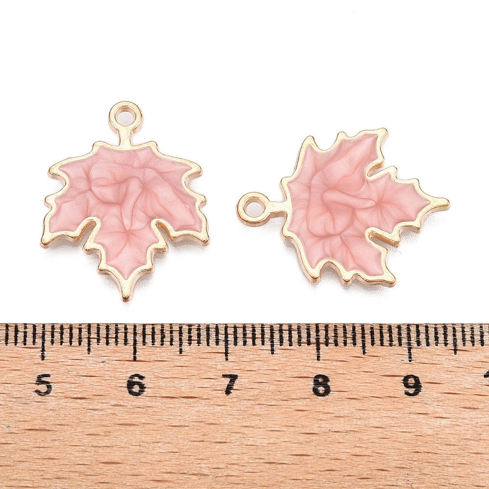 Enamel Maple Leaf Charm, Light Gold, Late Fall Tan, 24x19x2mm, Hole: 1.6mm. Sold Individually