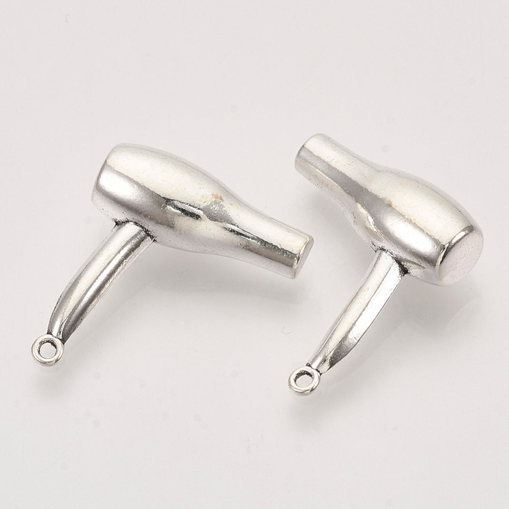 Hairdryer (Charm). Metal. Bright Silver. 26.5 x 23.5 x 8mm. Sold Individually.
