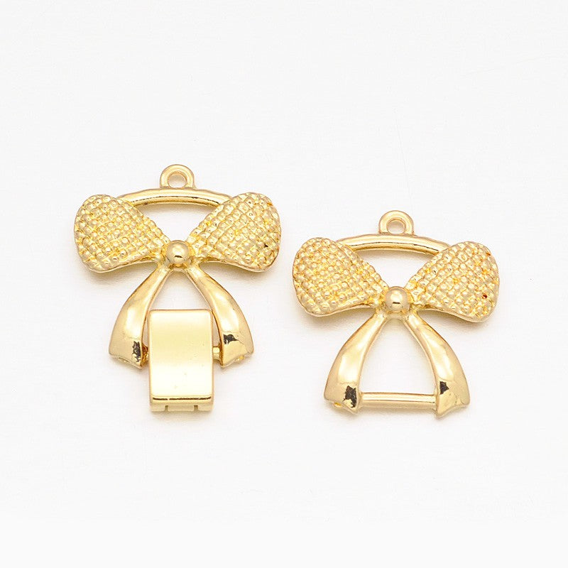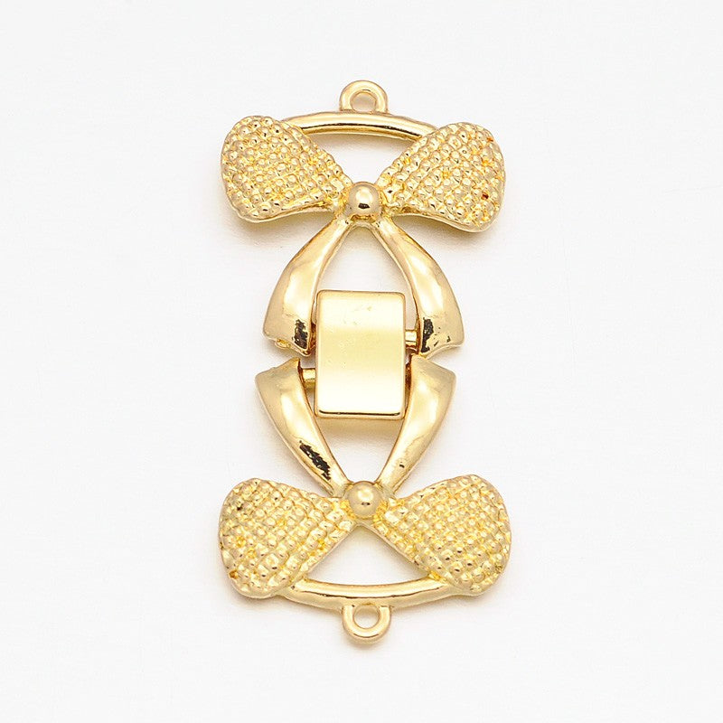 Alloy Fold Over Clasp, Bowknot, Golden, 43x21x3mm, Hole: 1mm. Sold Individually.