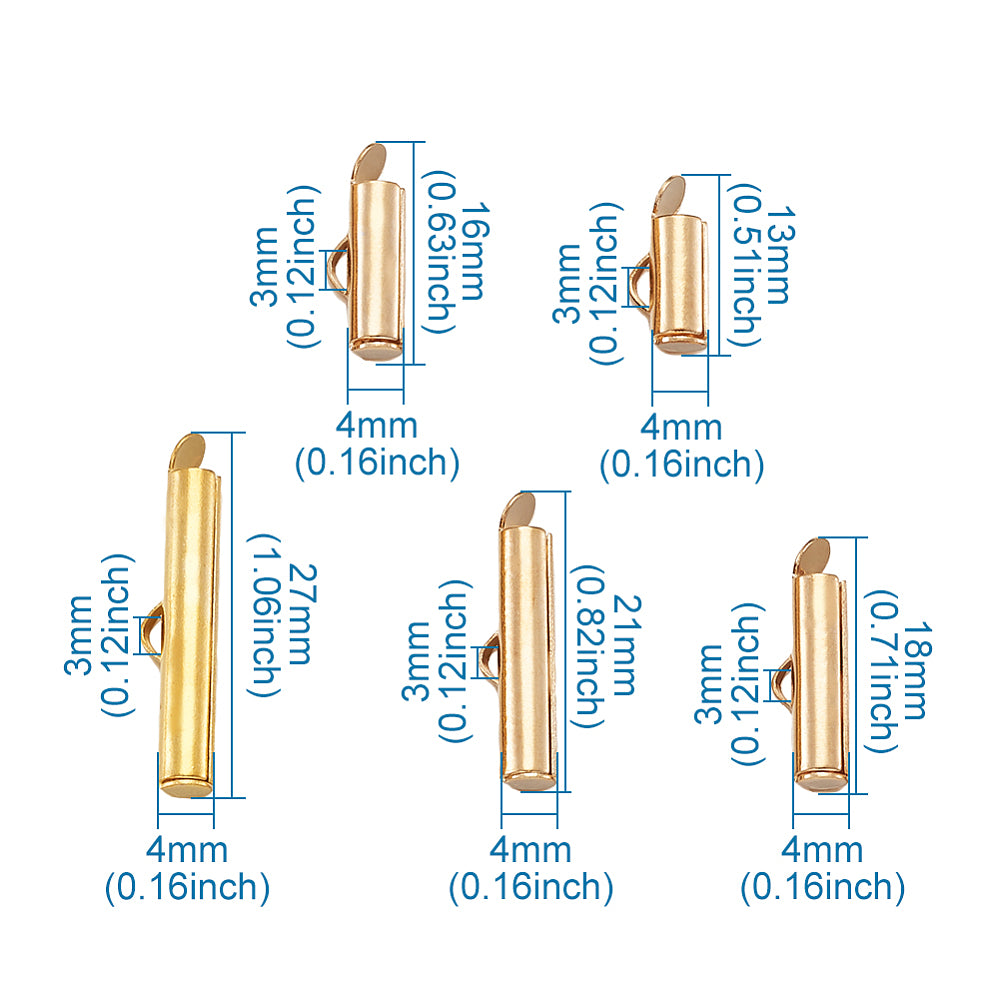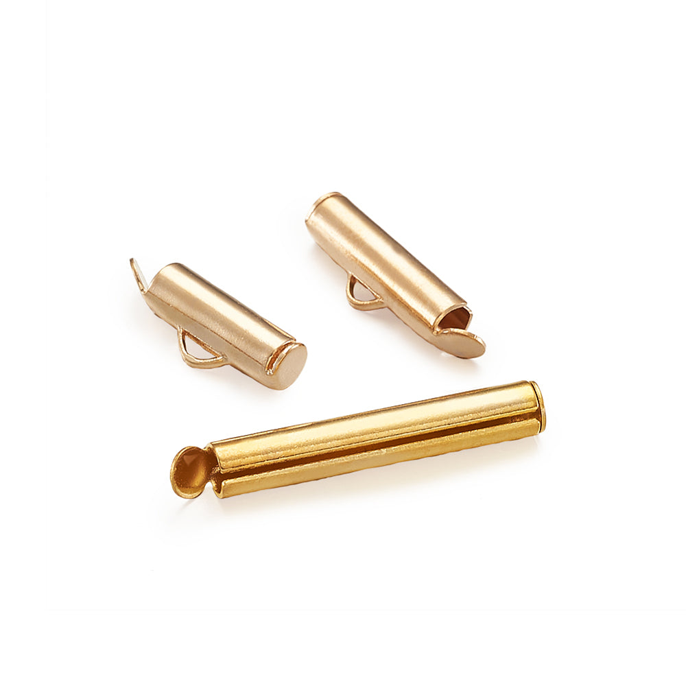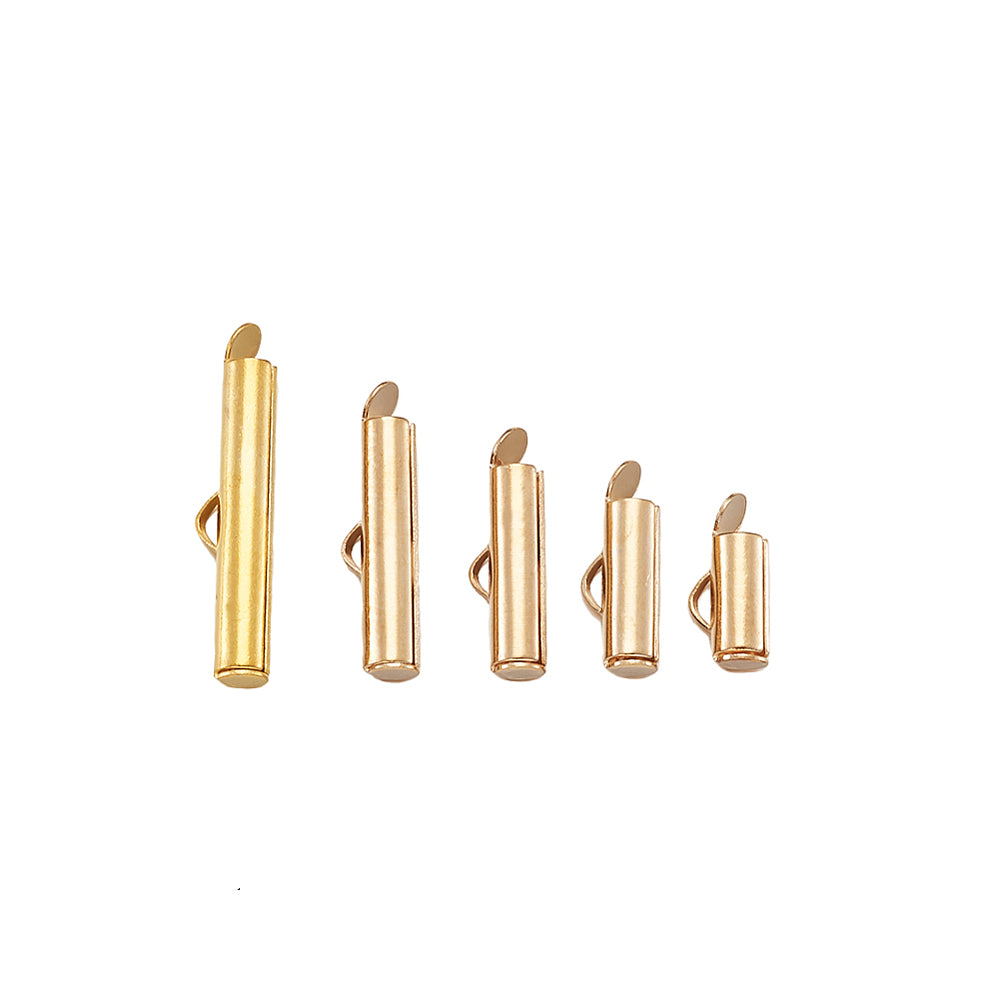 Brass Slide On End Clasp Tubes, Slider End Caps, Golden, 6x10~25x4mm, Hole: 1x3mm, 100pcs/set