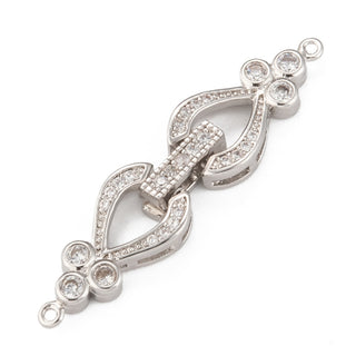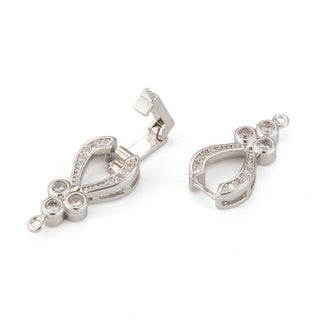 Brass Micro Pave Cubic Zirconia Fold Over Clasps, Square, Platinum, 25x11x4.5mm, Hole: 0.5mm
