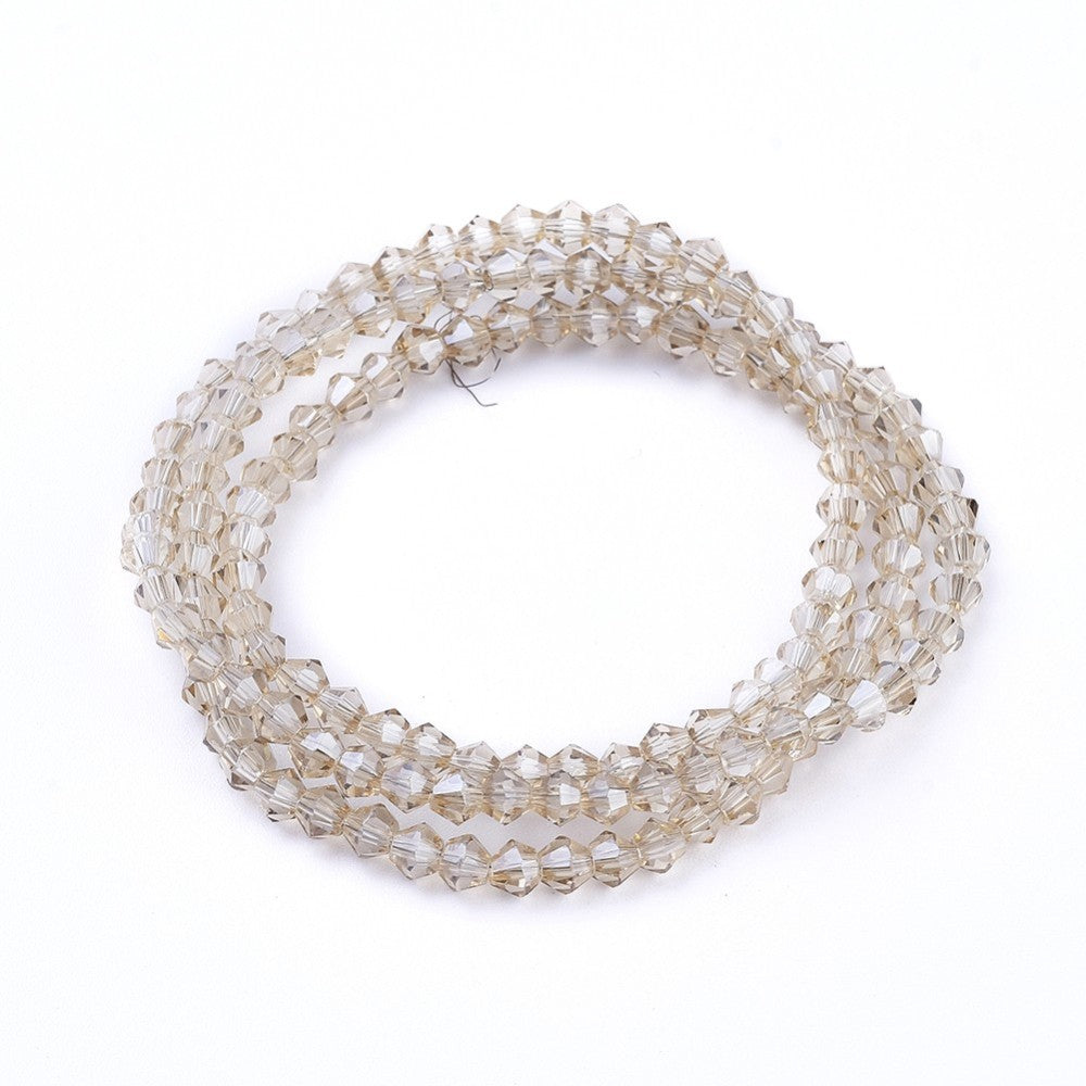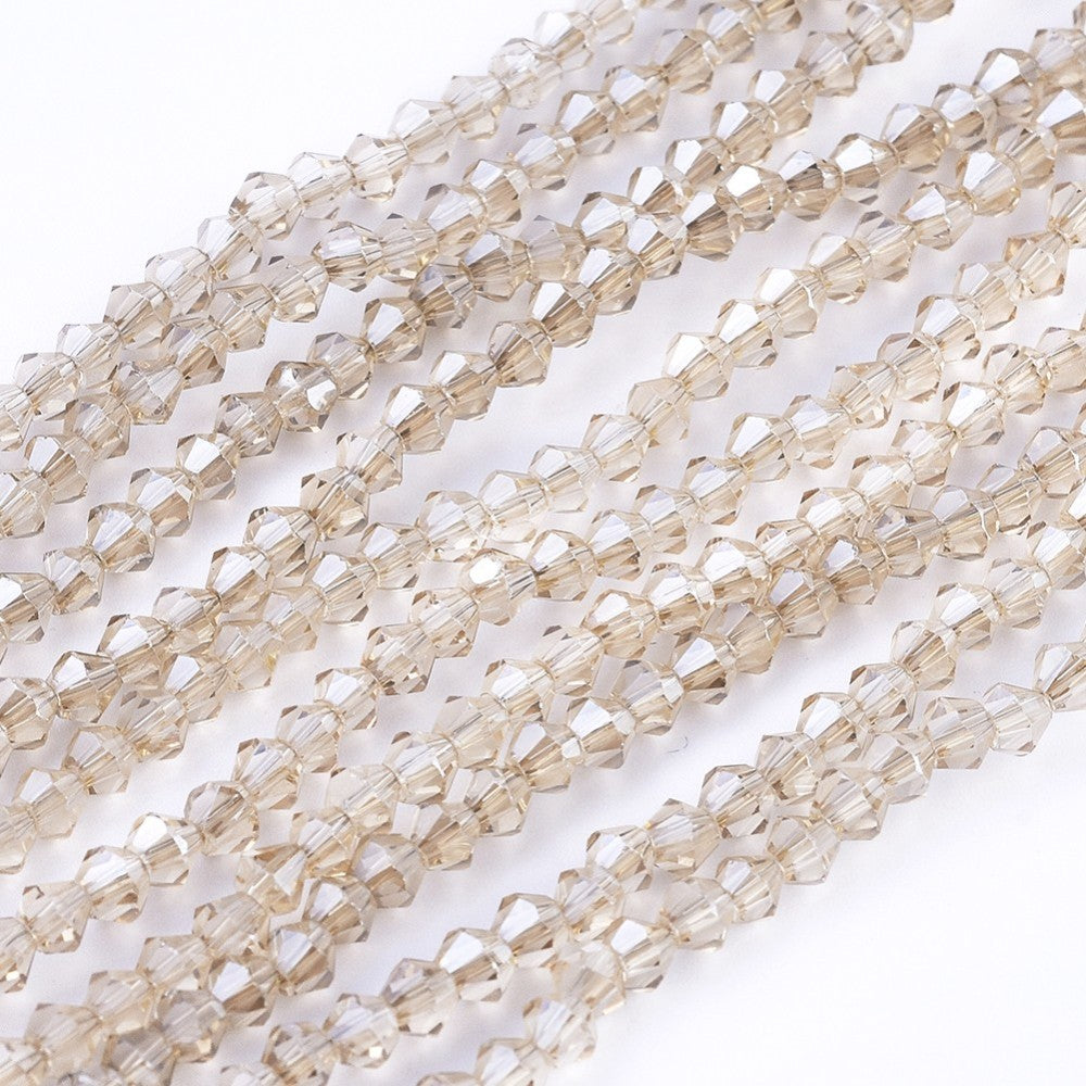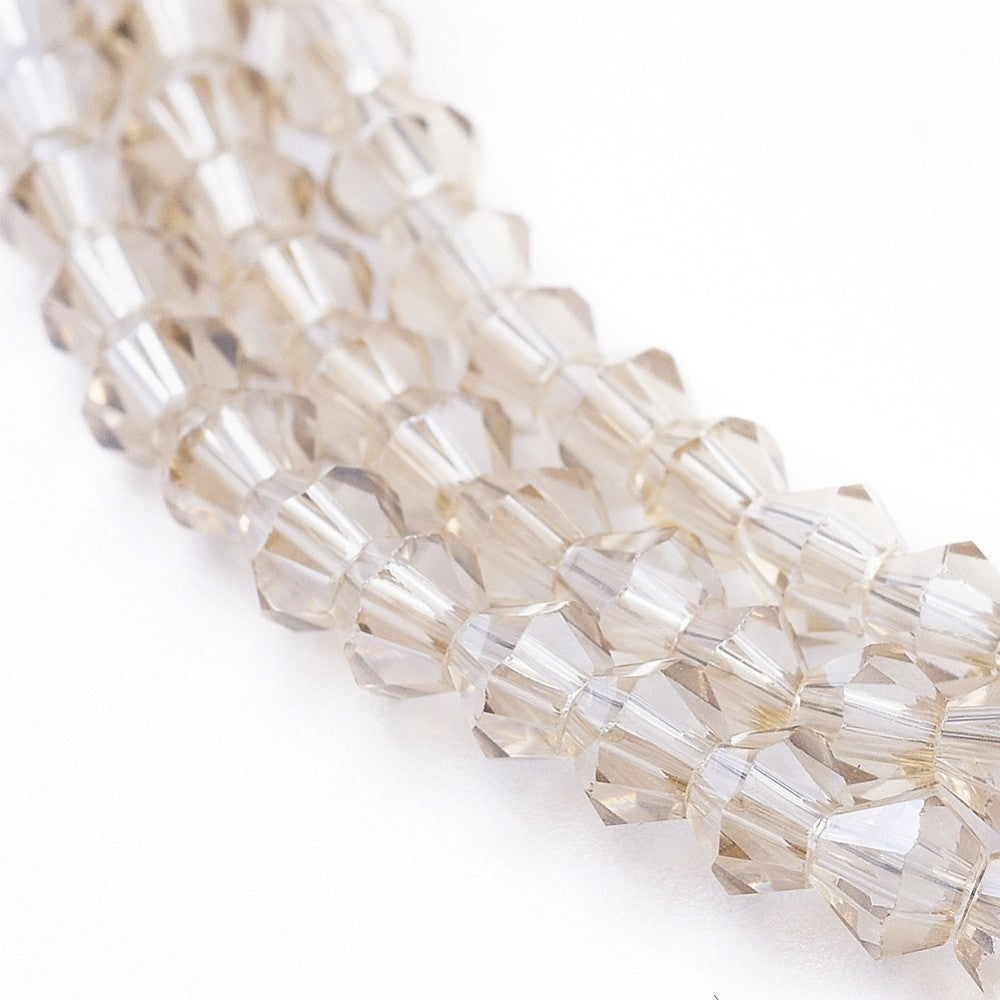 Bicone. Electroplated Rainbow Plating over Clear, Faceted, 3mm x3.5mm, Hole: 1mm; about 150pcs/strand, 18"
