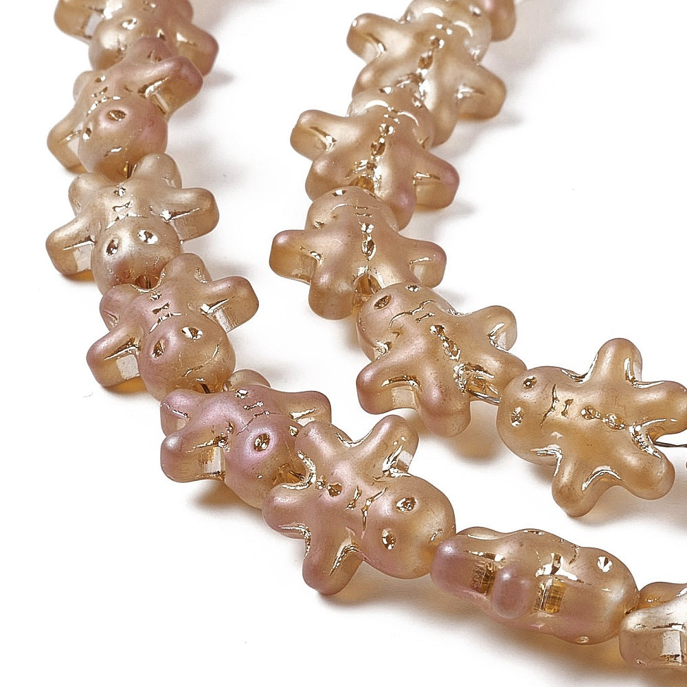 Full Rainbow Plated Frosted Electroplate Glass Beads, Ginger Man, for Christmas, Coral, 15x14x7mm, Hole: 1mm, (Approx 22 beads)