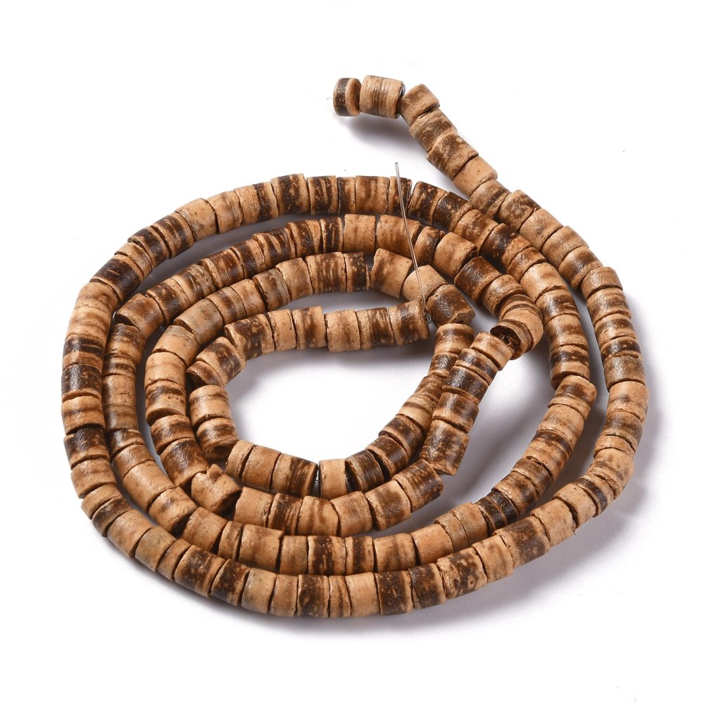 Coconut Beads Strands, Flat Round, Brown, 5x2.5~5mm, Hole: 1mm, about 160pcs/strand, 23.82''(60.5cm