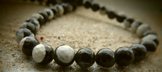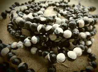 Agate (Natural Efflorescent) *Black/White 8mm Faceted. approx 46 beads on 16" Strand.