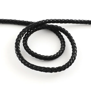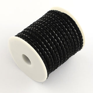 Braided Imitation Leather Cord. (Vegan Leather). 5 mm. (Black). 9 Meter Roll.