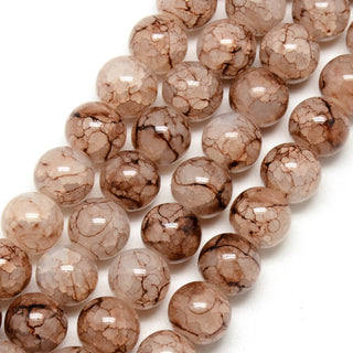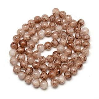 Glass (8mm) Round. Mottled Browns/Yellow Creams. (approx 53 Beads per 16" Strand)