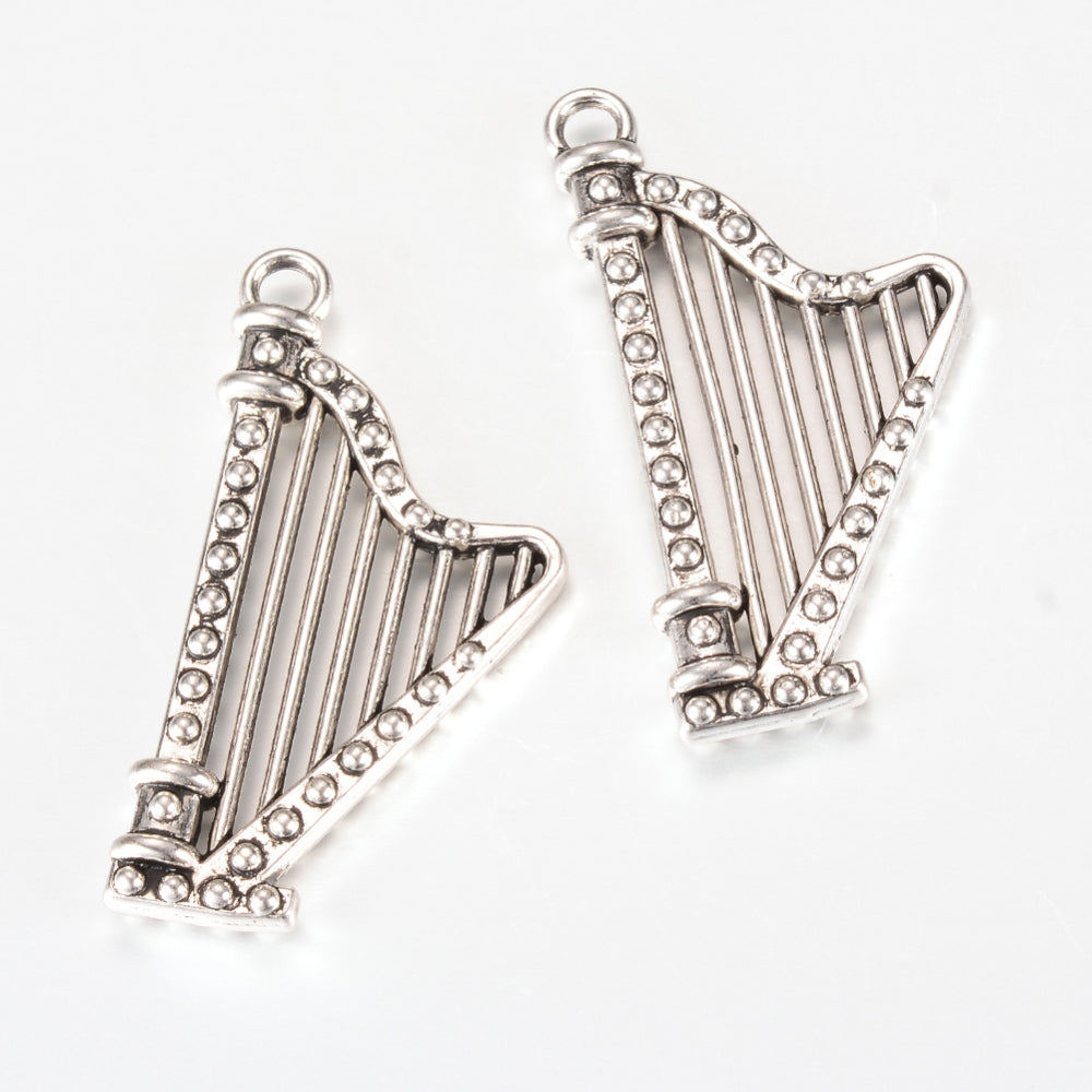 Harp Charm. 39x20x4.5mm, Hole: 2.5mm. *Sold Individually.