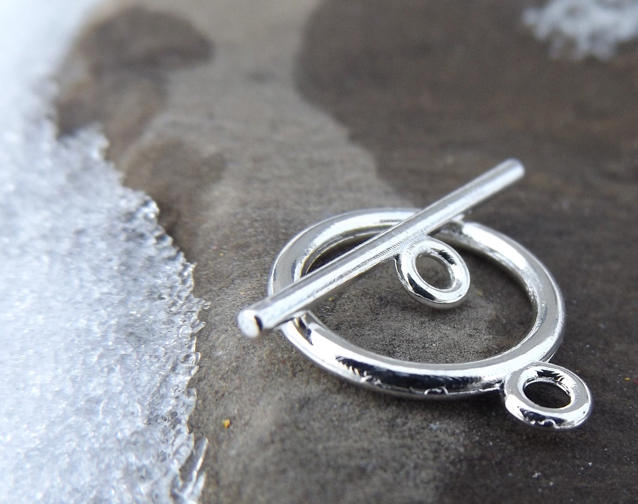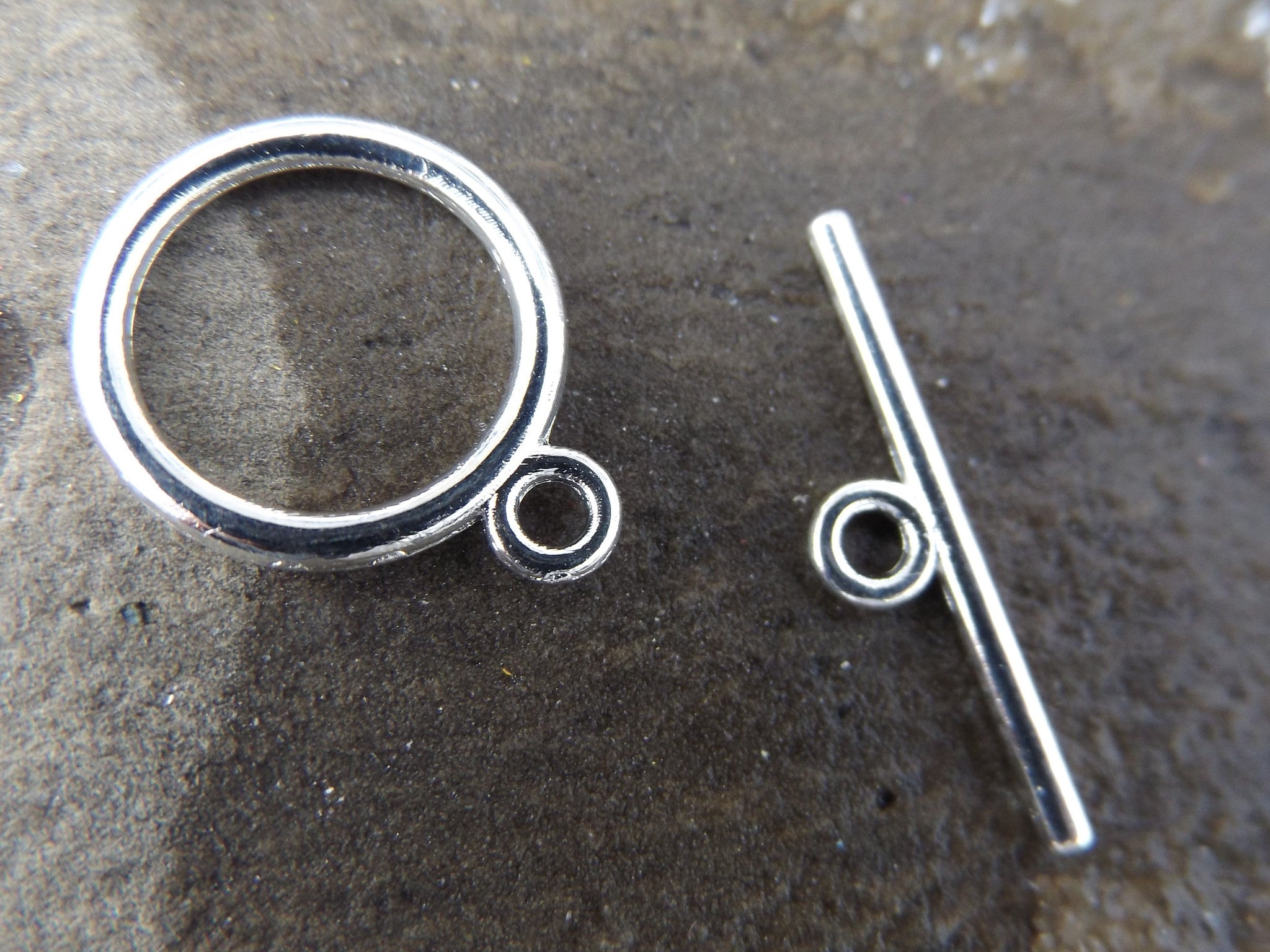 Tibetan Style Toggle Clasps, Flat Round, Cadmium Free & Nickel Free & Lead Free, Silver, Toggle: 15x2mm, Hole: 2mm; Tbar: 21mm, Hole: 2mm