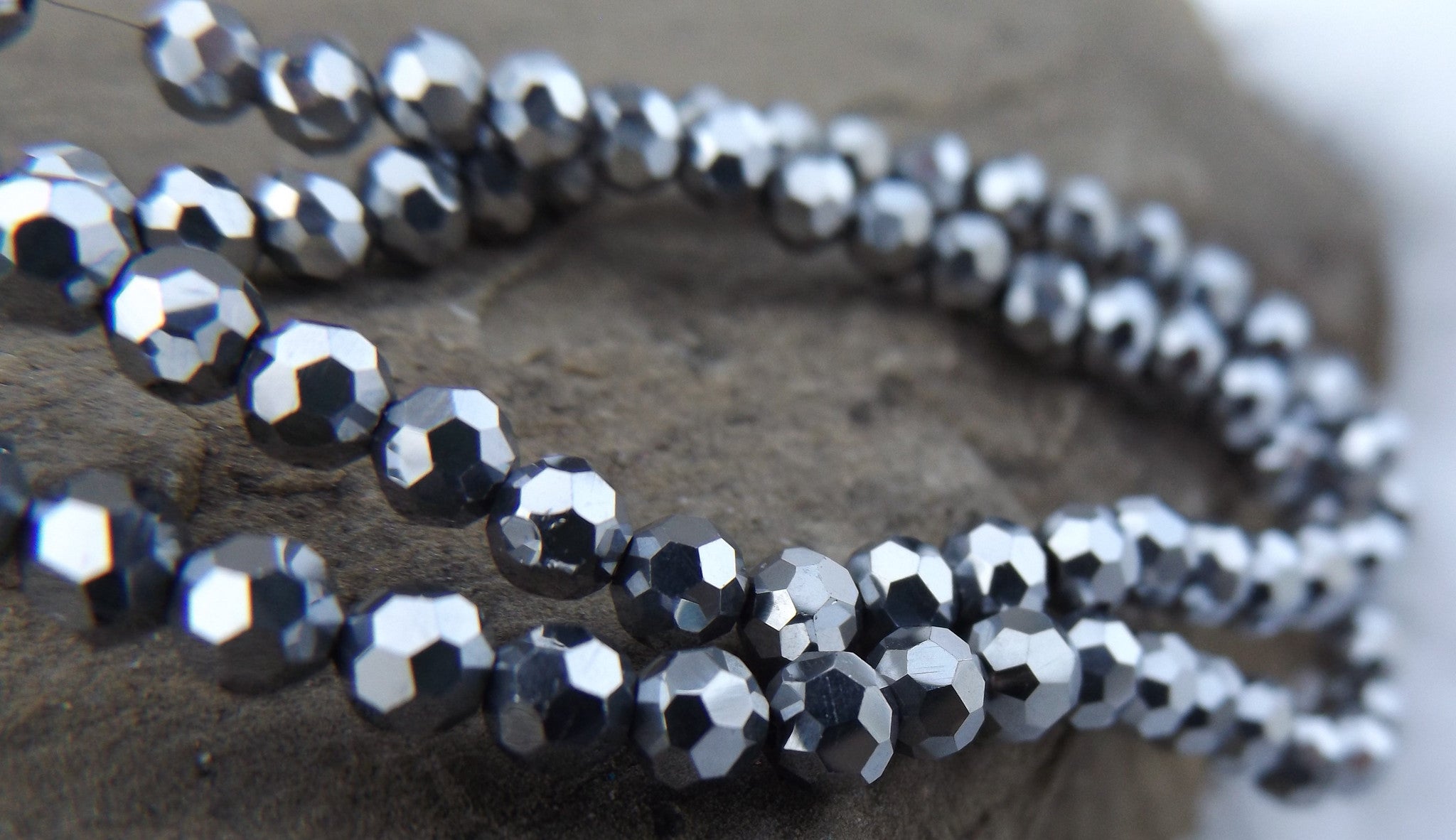 Glass Beads Silver Electroplate (4mm Faceted Rounds)