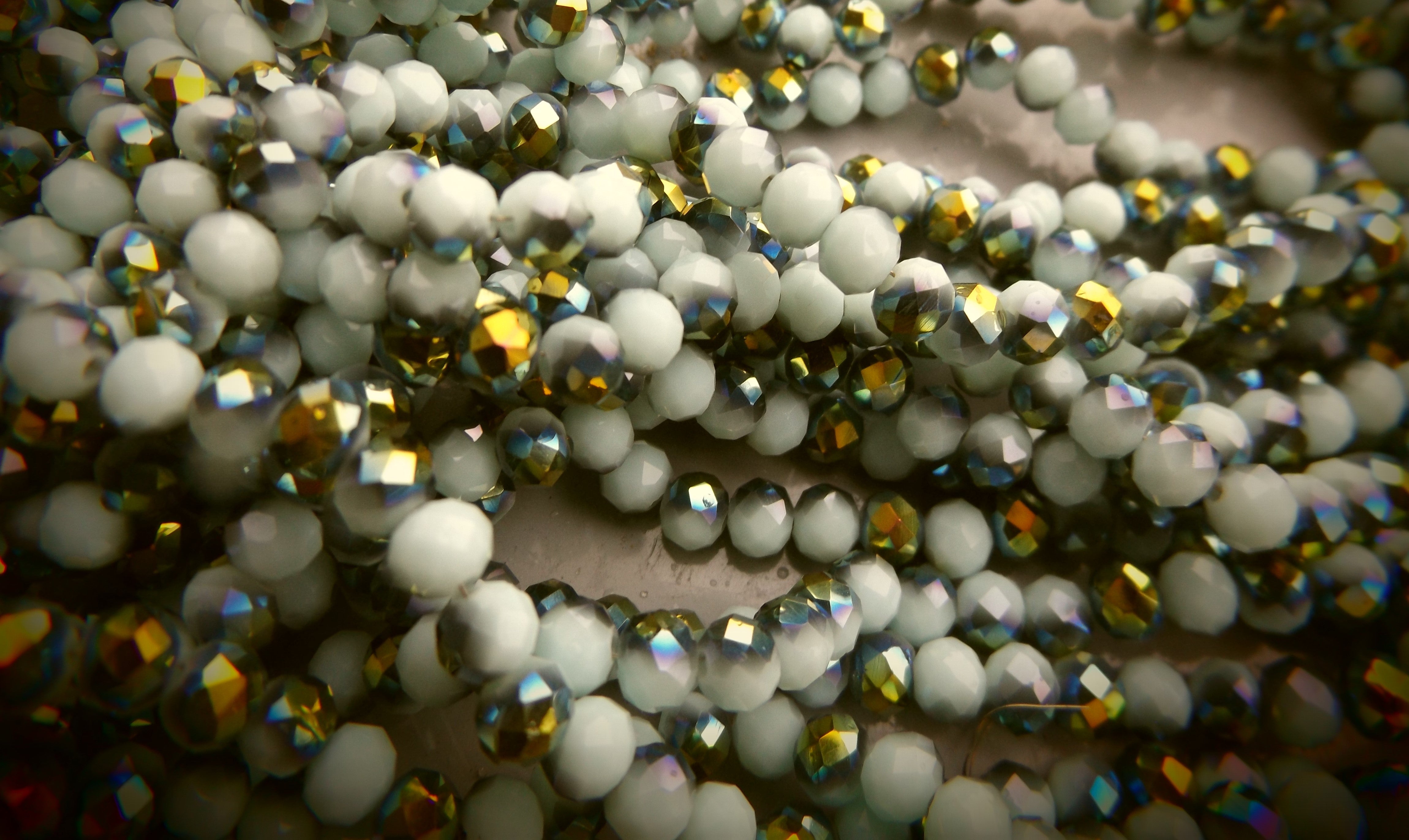 Faceted Glass Rondelle (6 x 4mm) *Half Electroplated Softest Blue/ Green (approx 100 beads per 15.5" Strand)