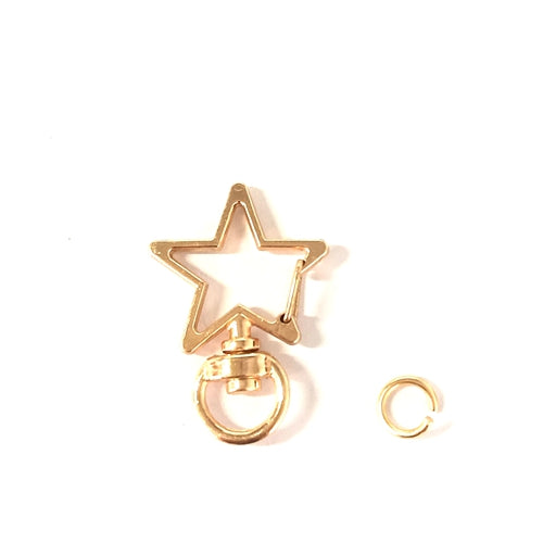 Star Alloy Swivel Clasps, Lanyard Push Gate Snap Clasps, Light Gold, 3.4x2.4x0.6cm, Hole: 9x5mm, Jump Ring: 8x1mm. (See Color Finish Options)