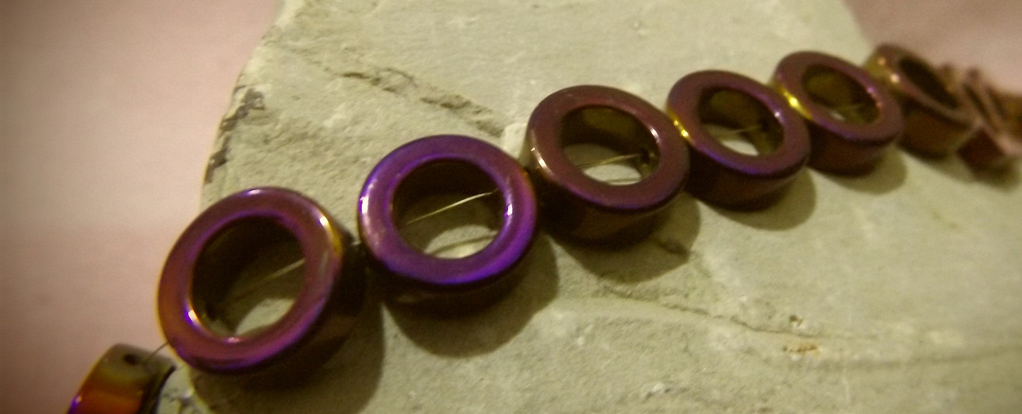 Hematite (Vivid Purple Electroplated Holed Donuts) 12mm diam. (Non Magnetic) 15" Strand