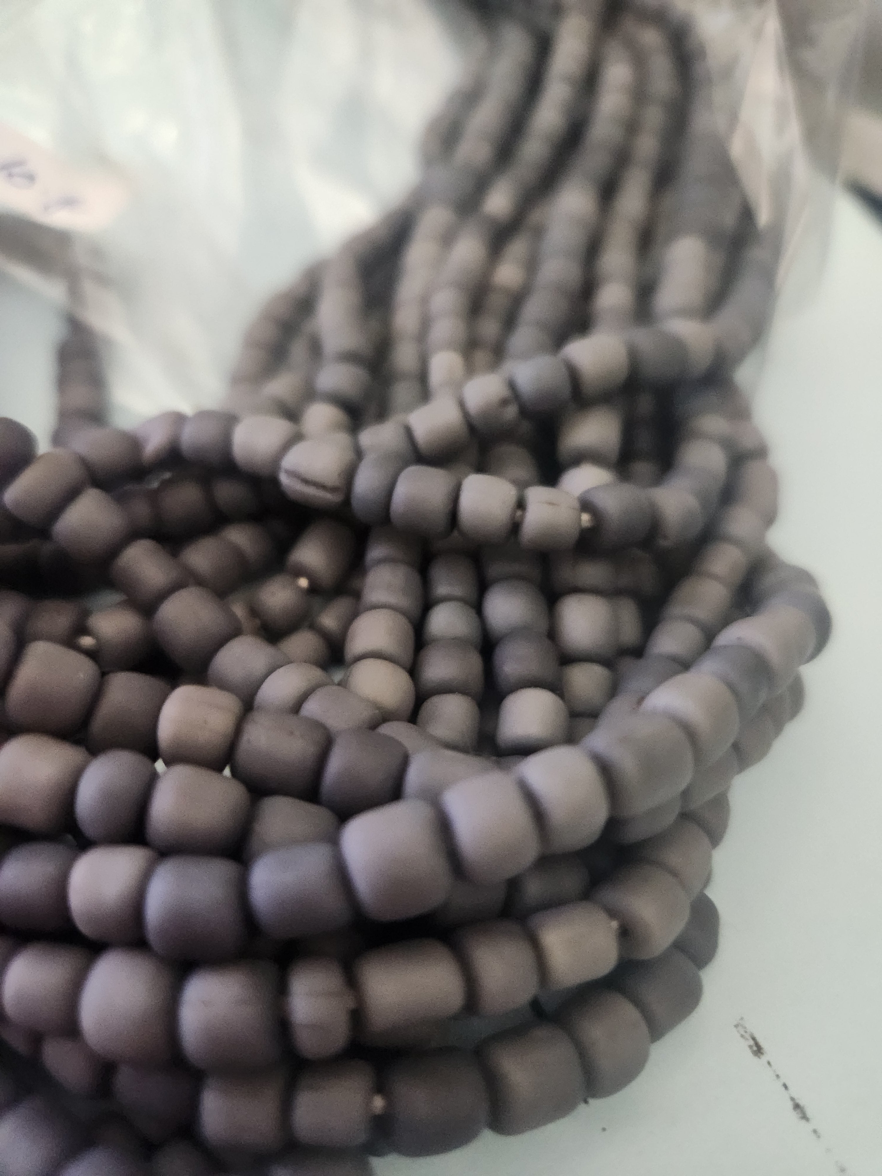 Indonesian Glass "Tube" beads. approx 4 x 4mm. 24" strand. Approx 150 Beads/ Strand. *Fire Greys
