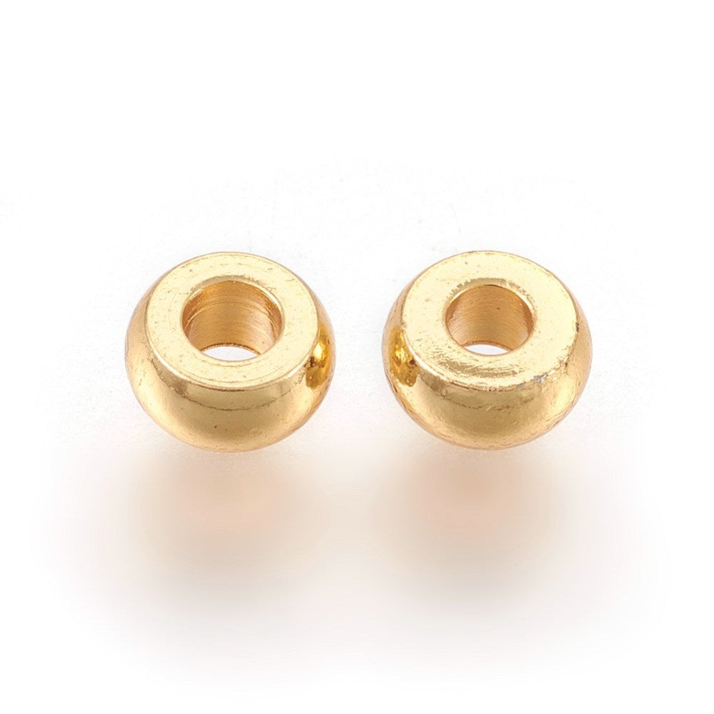 304 Stainless Steel Spacer Beads, Flat Round, Real 18k Gold Plated, 4x2mm, Hole: 1.6mm. (Packed 50 Beads).