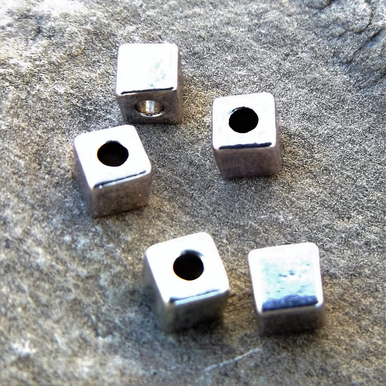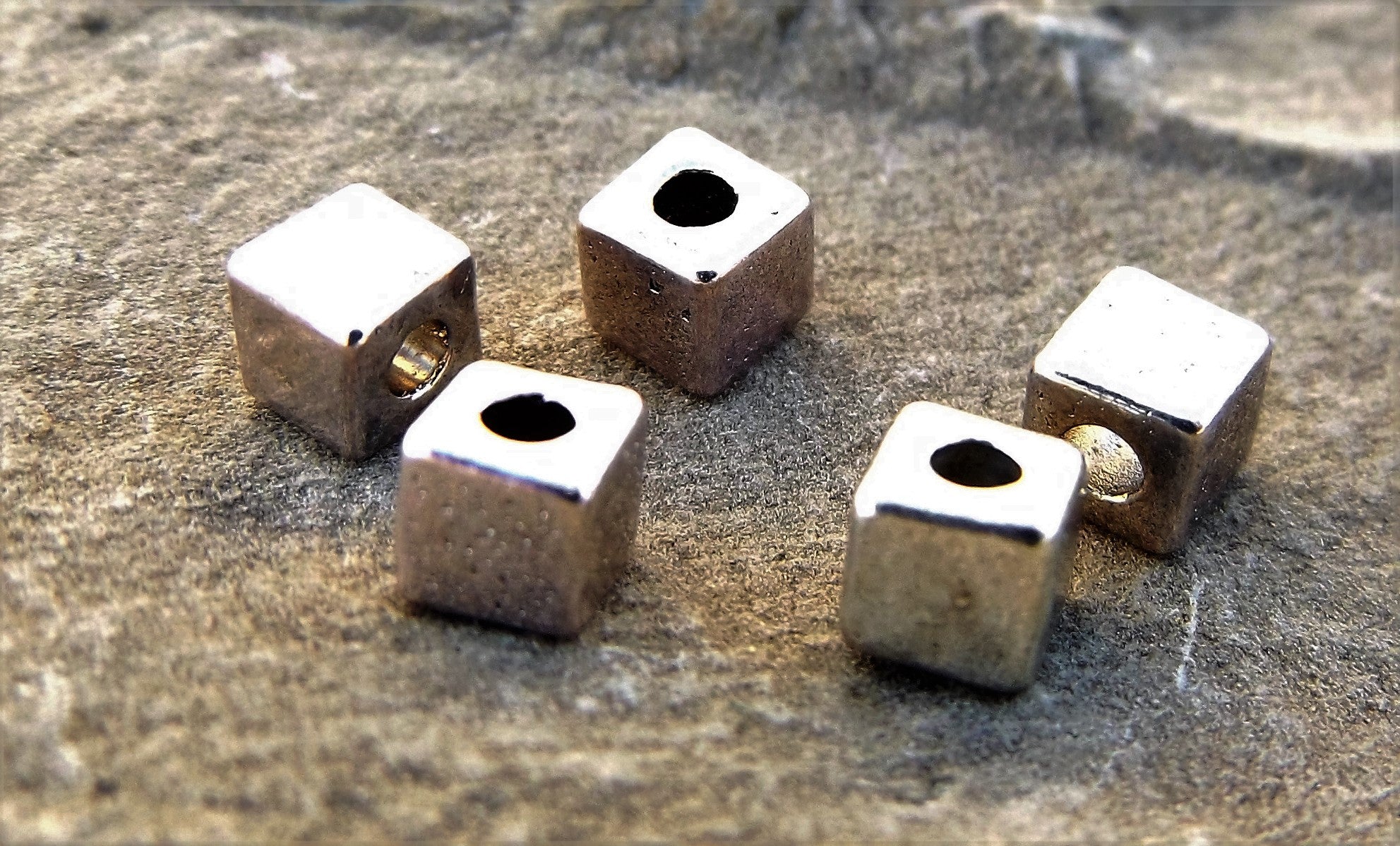 Metal Beads (Cube) Silvertone 4 x 4 mm (packed 15)