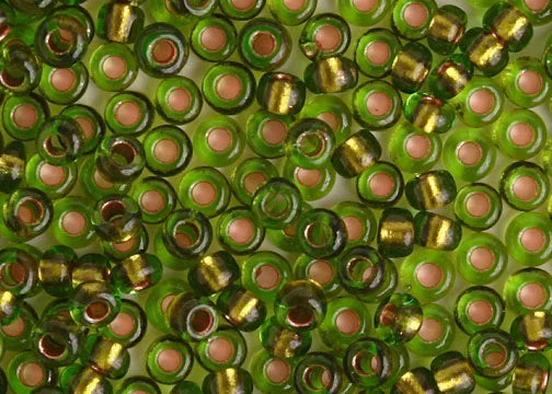 11/0 Czech (Transparent Green Copper Lined) 6 String/Hank -Approx 17 Grams