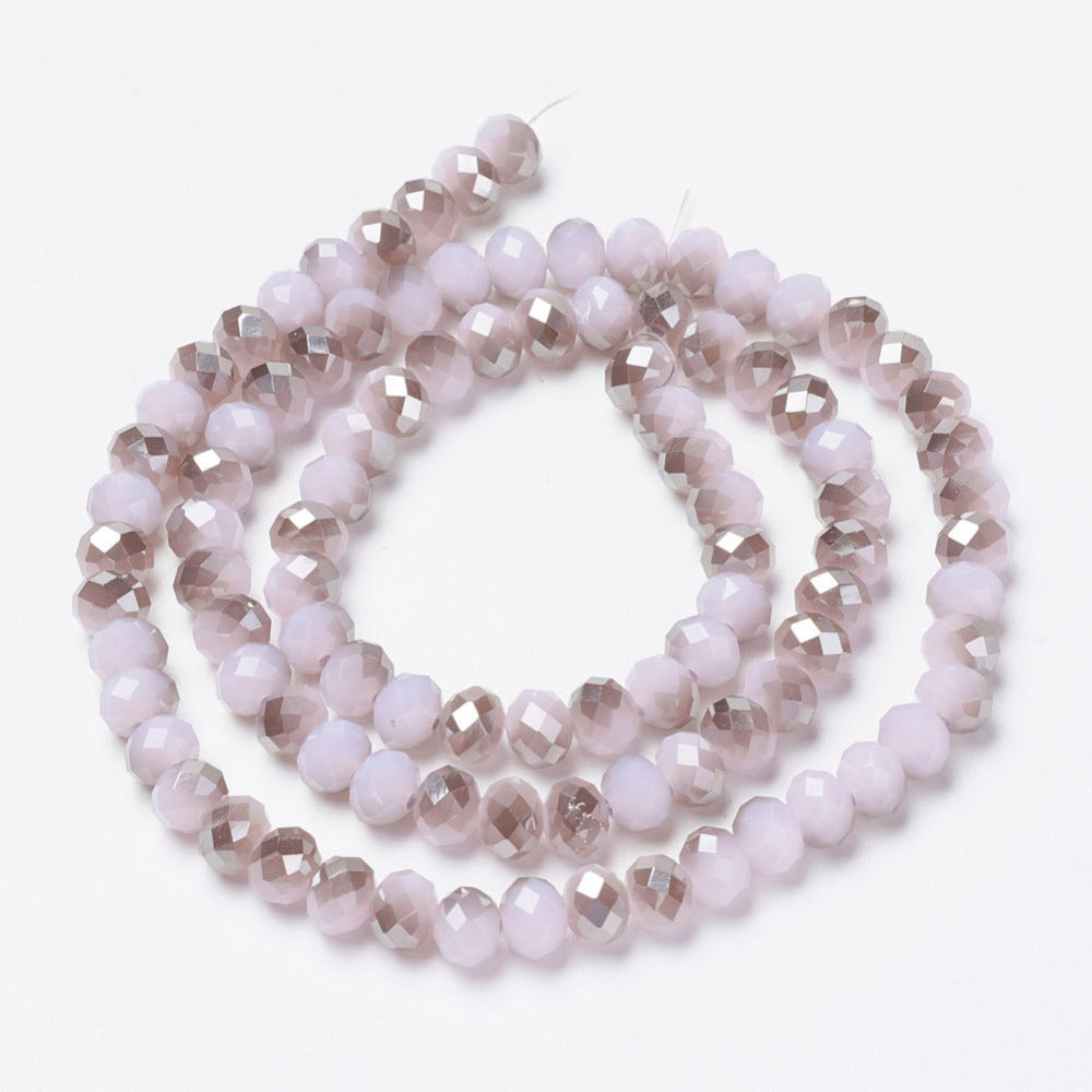 3 x 2mm Electroplate Glass Beads Strands, Half Gray Plated, Faceted, Rondelle, Lavender Blush Base Hole: 0.8mm, Approx 185 beads.
