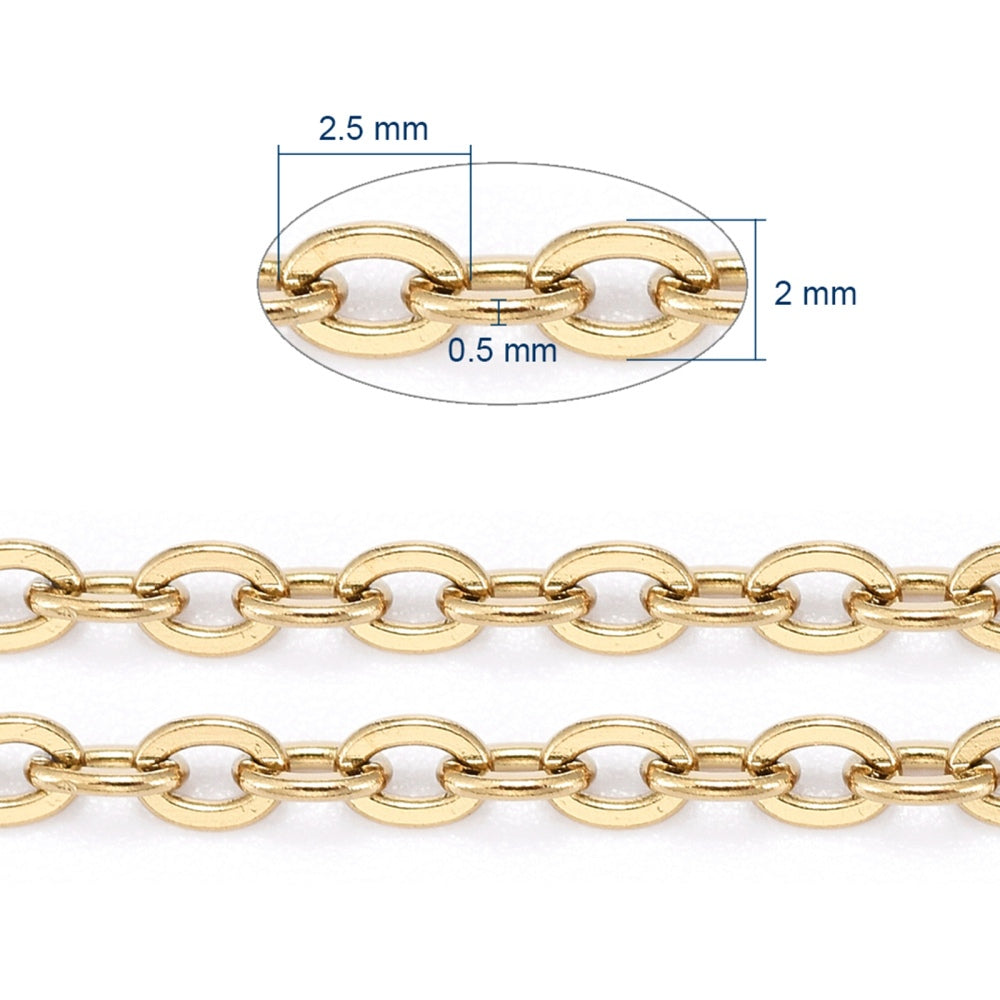 304 Stainless Steel Cable Chain, Soldered, Flat Oval, Golden, 2.5x2x0.5mm Sold by the Foot
