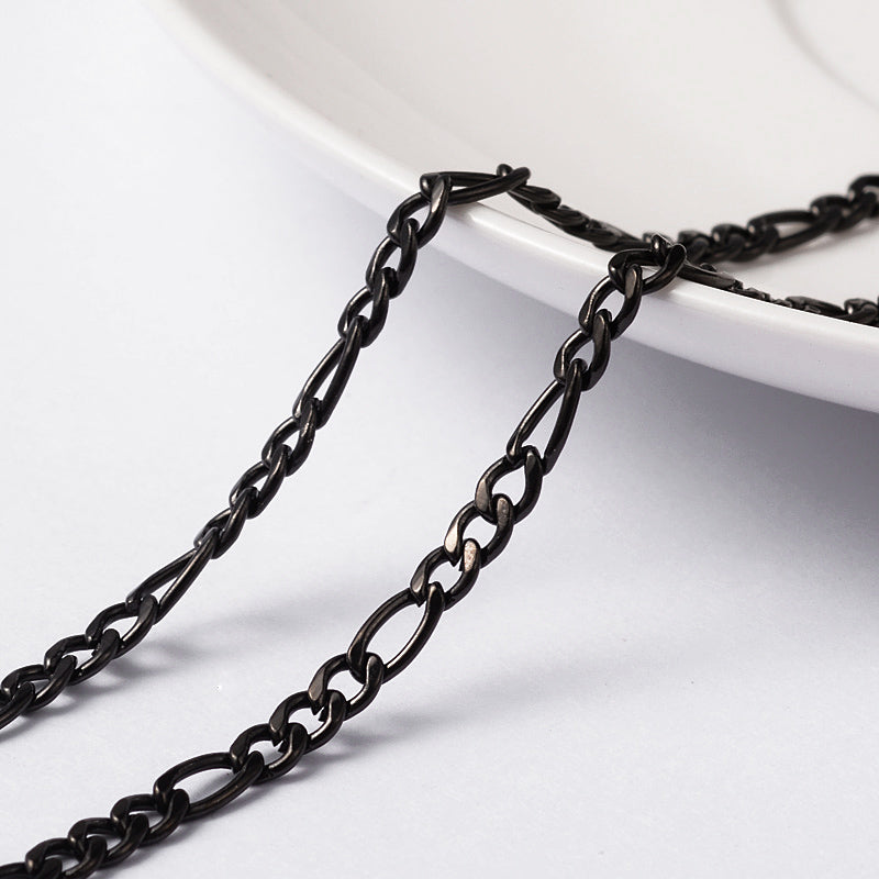 304 Stainless Steel Figaro Chains, Unwelded, Electrophoresis Black, 4x3x0.8mm & 6.5x3x0.8mm, *Sold by the Foot