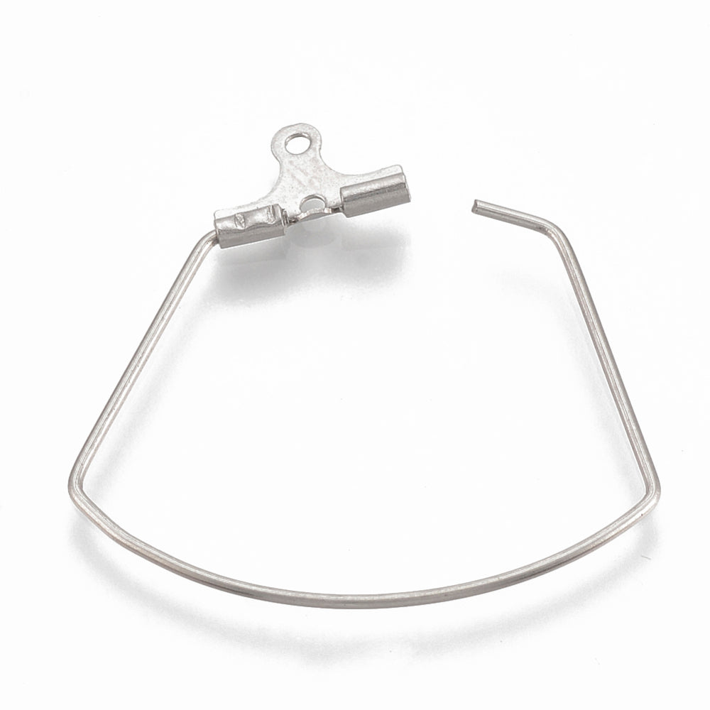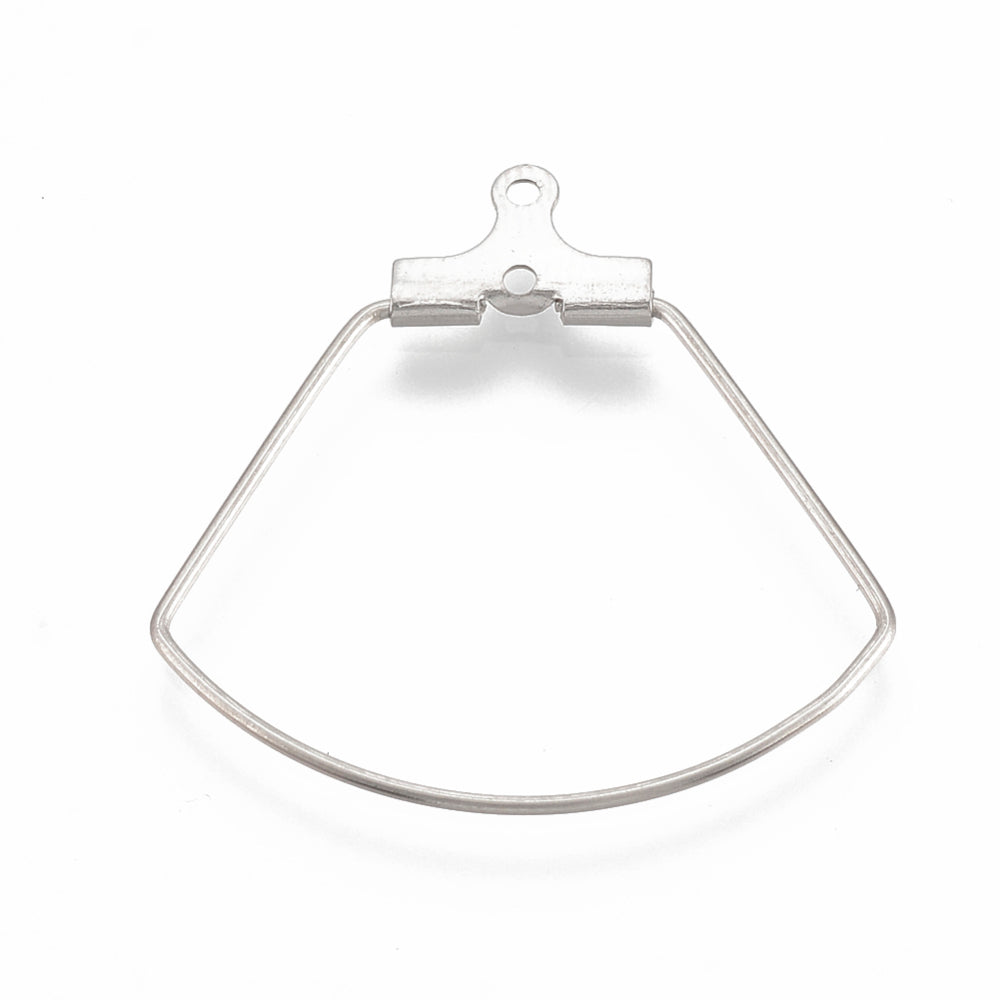 304 Stainless Steel Wire Pendants, Hoop Earring Findings/ Frame, Fan ,Stainless Steel Color, 24 Gauge, 27x26.5x0.5mm, Hole: 1mm. (Packed 10)