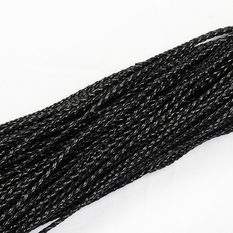Braided Imitation Leather Cord. (Vegan Leather). 3mm. (Black). 12 Foot Roll.
