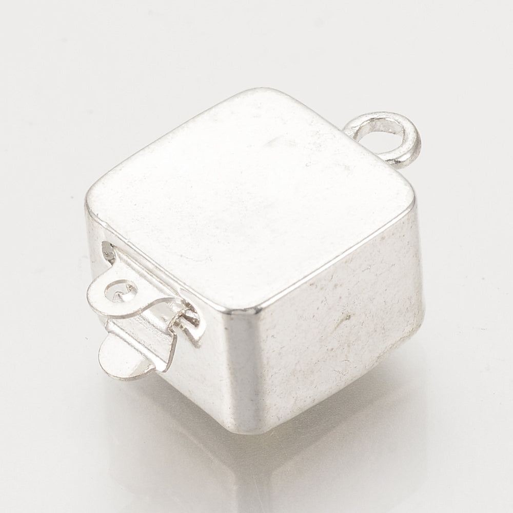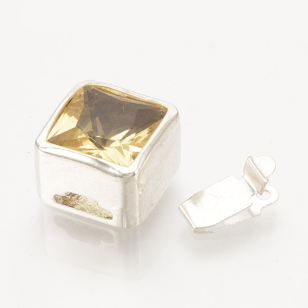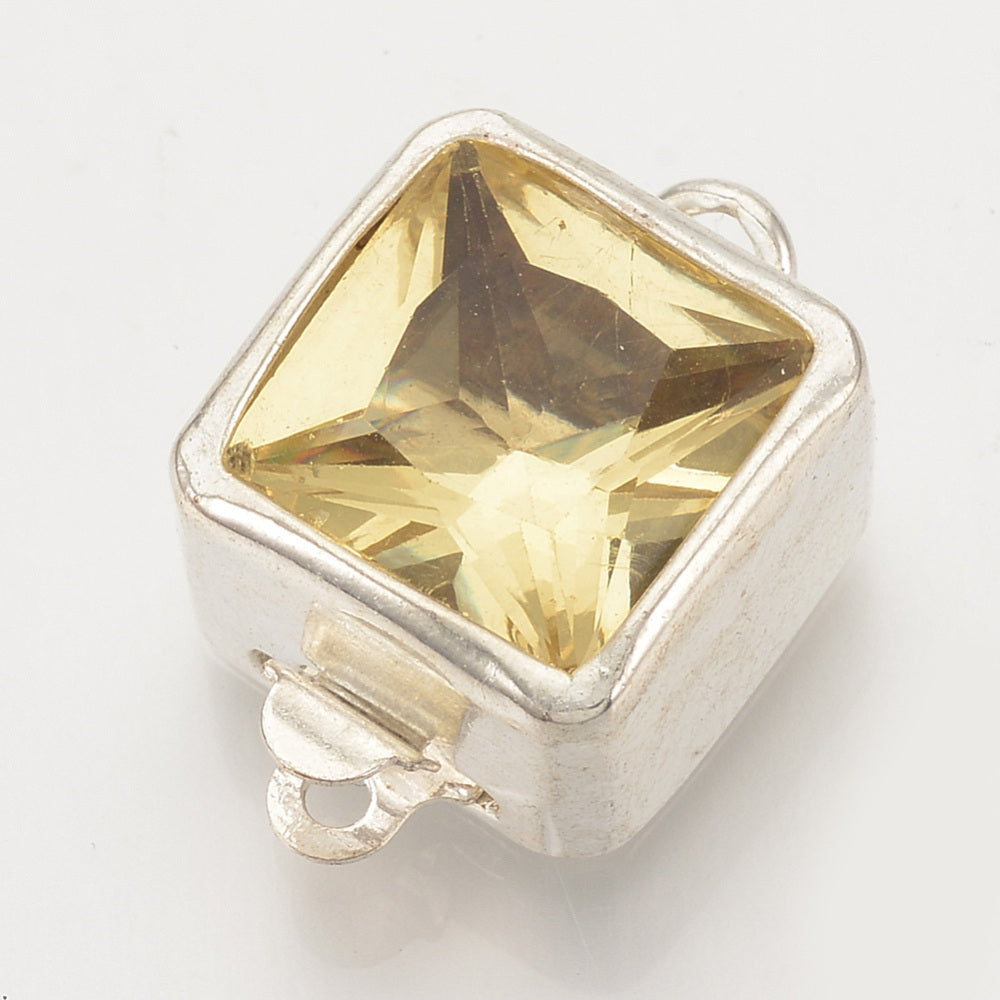 Brass Box Clasp, with Yellow Glass, Silver Color Plated, 18x12x9mm, Hole: 1~1.5mm. Sold Individually.