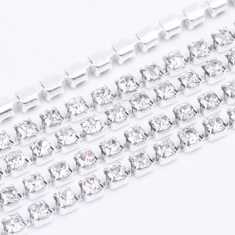Brass & Rhinestone Cup Chains, Silver Color Plated, Crystal, 3.5 mm. *Sold by the foot