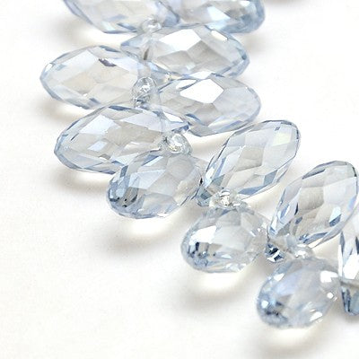 Crystal Glass Beads Strands, Faceted, Drop, Blue AB, 12x6mm, Hole: 1mm; about 100pcs/strand, 16.5"