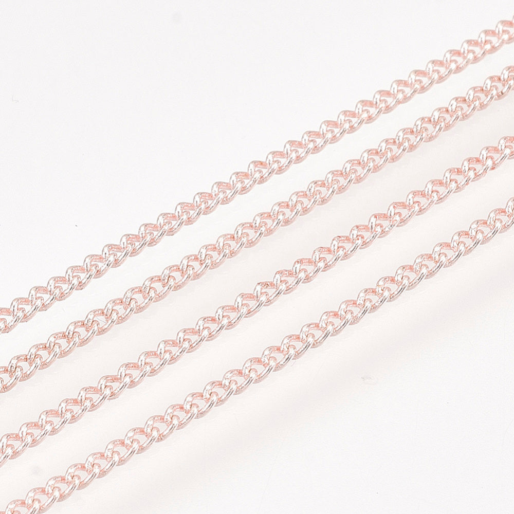 Electrophoresis Iron Curb Chains, with Spool, Soldered, Rose Gold, 1.6x1.2x0.3mm *Sold by the Foot