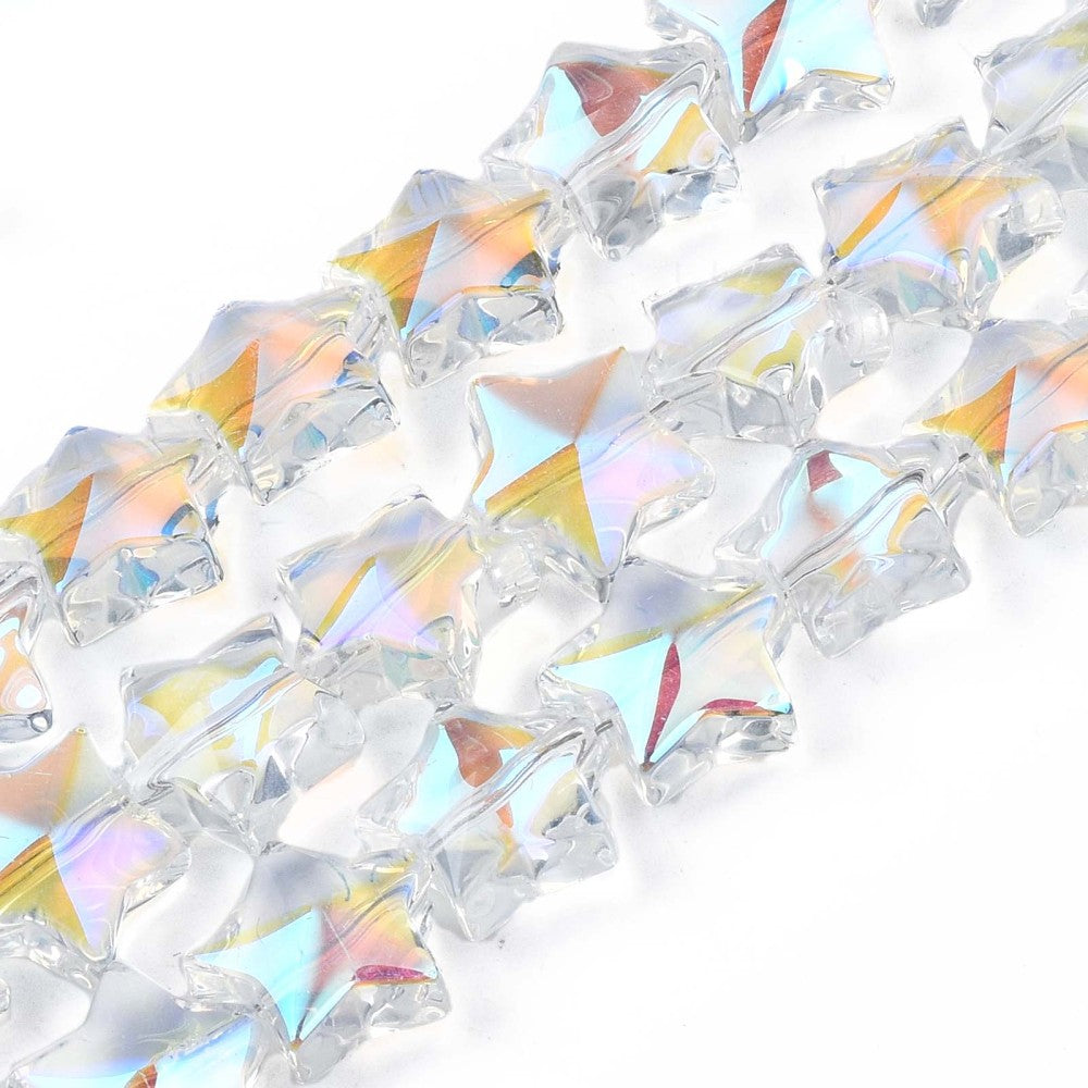 Electroplate Glass Beads Strand, Star, Clear AB, 11.5~12.5x13x7mm, Hole: 1mm, Approx 55 Beads.